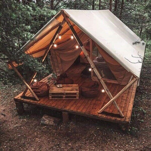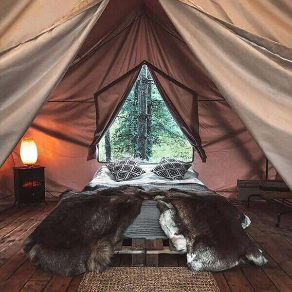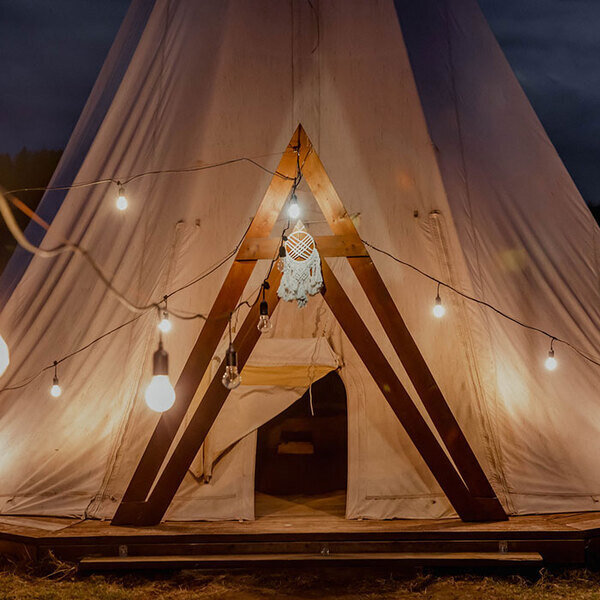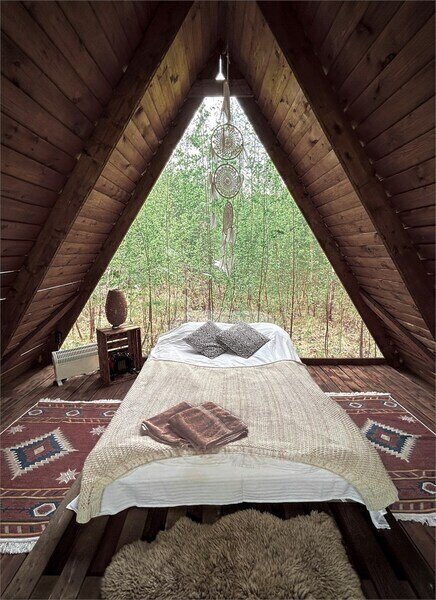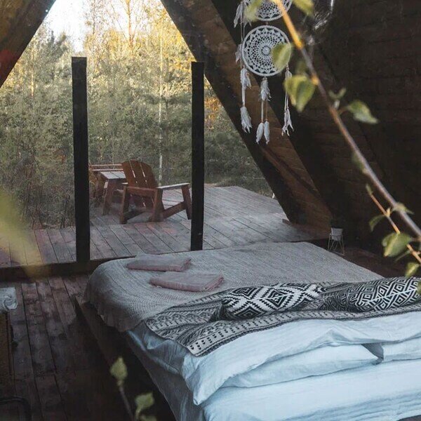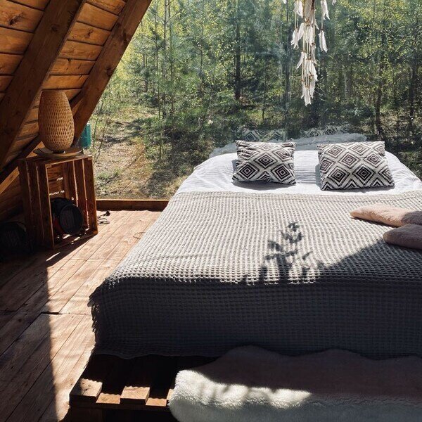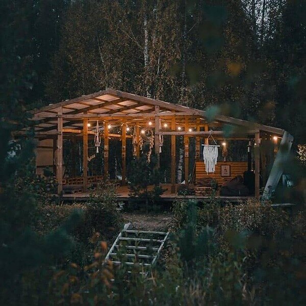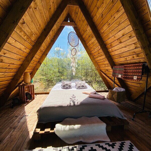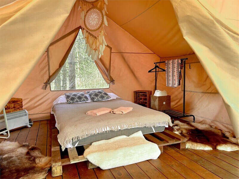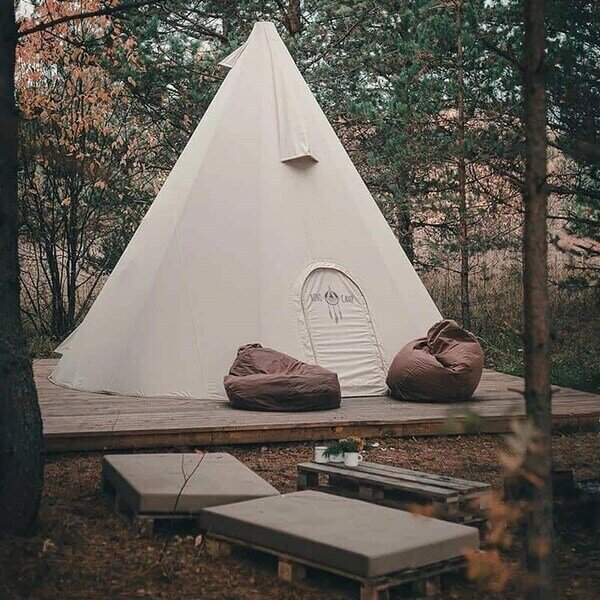 Вас ждёт проживание в уютных шатрах и экологичных хижинах среди леса. В домиках вы найдёте всё необходимое для вашего удобства.