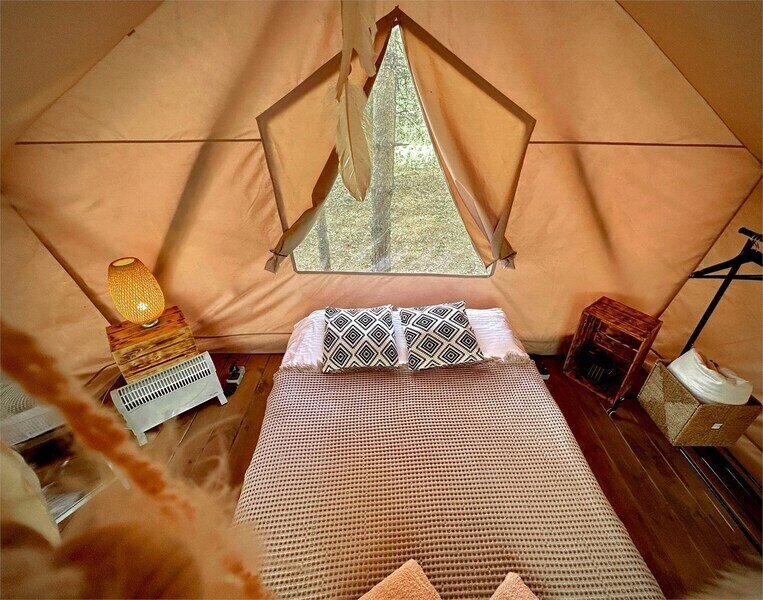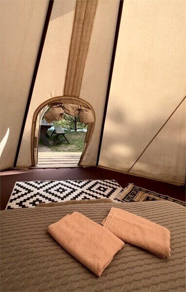 4 уютных шатра расположены вдоль внутреннего пруда и на берегу реки, в отдалении от основной части кемпинга. Идеальное место для проведения романтических выходных или короткого, восстанавливающего отпуска.