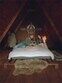 Внутри тента удобная кровать, тёплые пледы, постельное белье и полотенца.