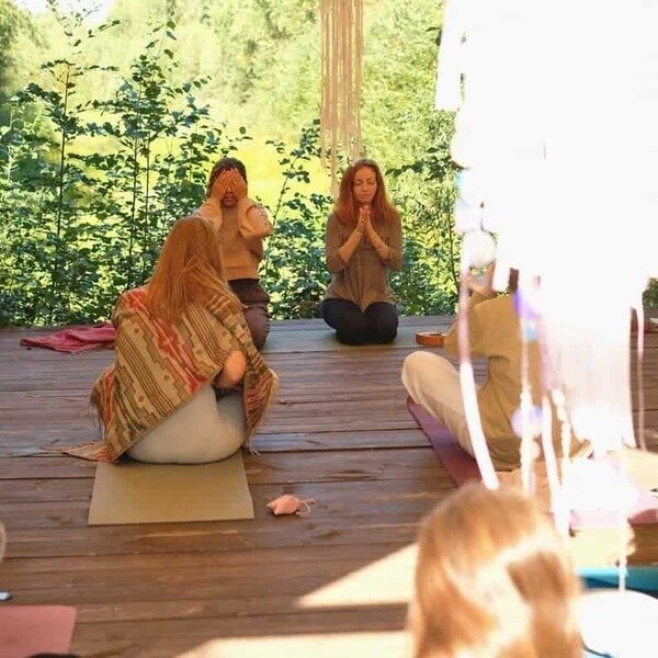 Зона для медитаций с видом на красивый пруд. Идеально подходит для занятий йогой.