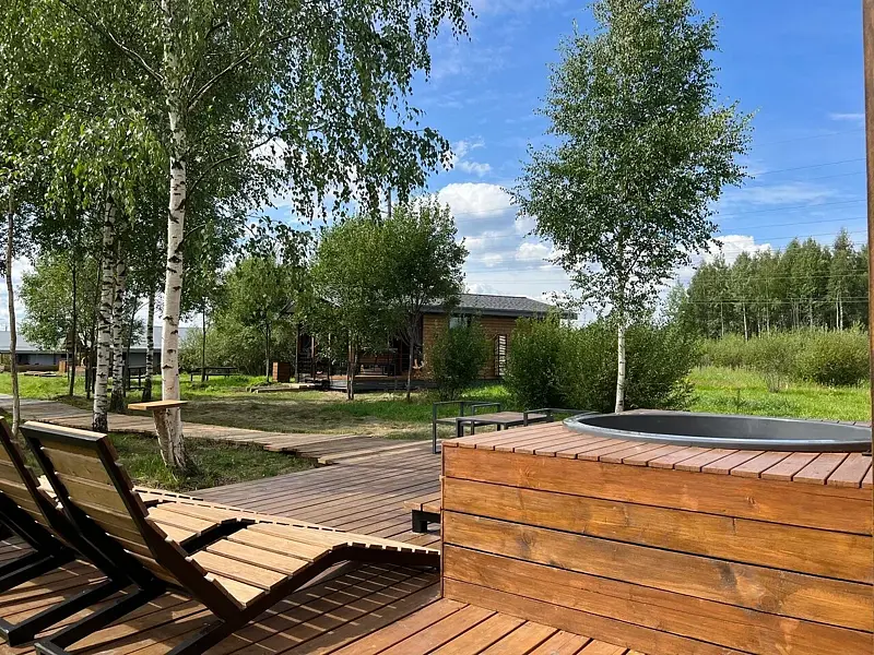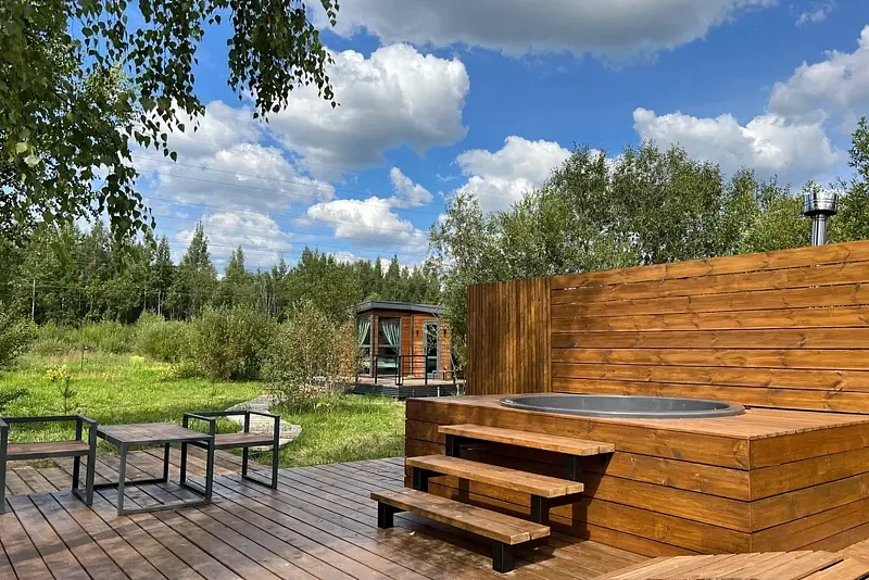 Эко-отель «Болото» приглашает вас в незабываемое путешествие в мир спокойствия и единения с природой, всего в 15 минутах от живописного Коркинского озера. Здесь вы сможете по-настоящему расслабиться и насладиться тишиной и уютом, выбрав для проживания как стильные домики, так и уютные сафари-тенты.