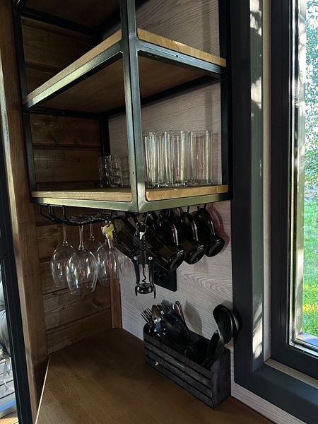 Кухня (предметы): кофемашина, холодильник, плита, чайник, посуда, бокалы, штопор. Спальня: шкаф / гардероб, есть Wi-Fi, есть кондиционер.
