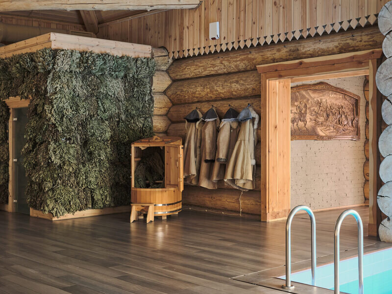Инфраструктура: тапочки, купель, зона отдыха, полотенца, шапочки, душ, халатыПросторный комплекс с комнатами для банных процедур и комфортного отдыха в компании. Барельефы с сюжетами из жизни русских князей, большой бассейн с видом на хвойный лес и терраса под открытым небом зададут атмосферу после жаркой бани. Для ценителей есть и алтайская парная, обшитая липовыми досками: мягкий целебный пар с медовыми нотами успокоит и согреет как тело, так и душу. Вместимость: 22 гостя.