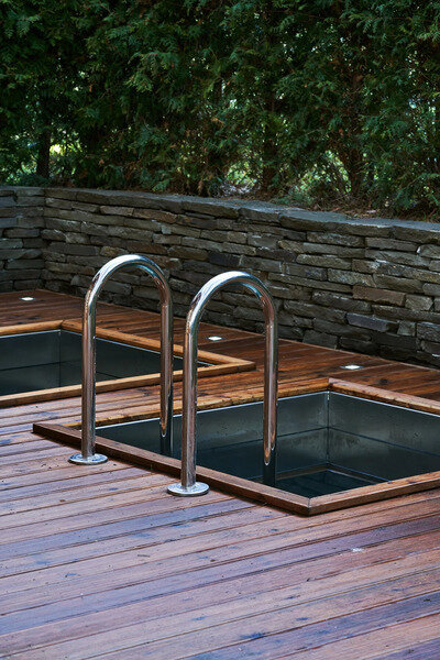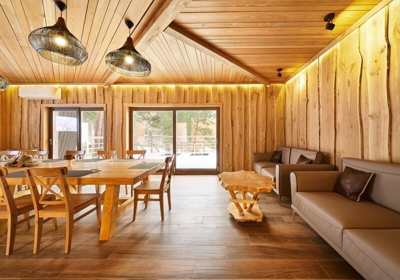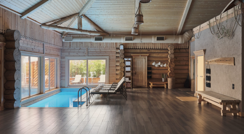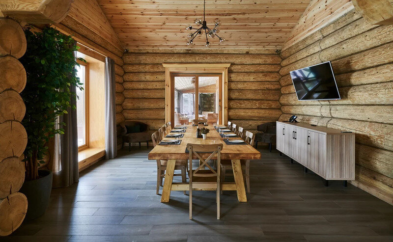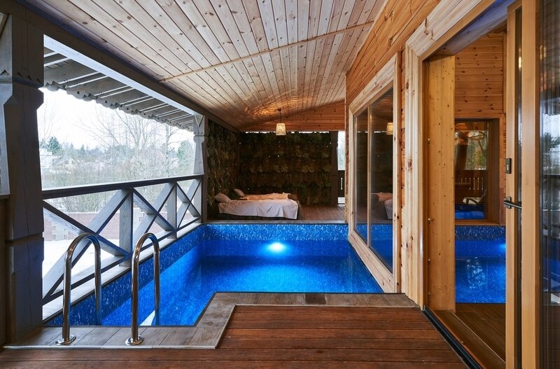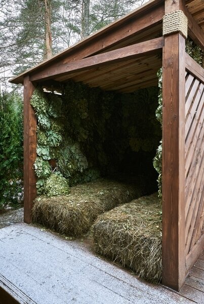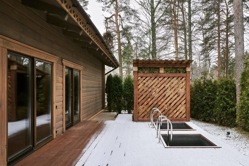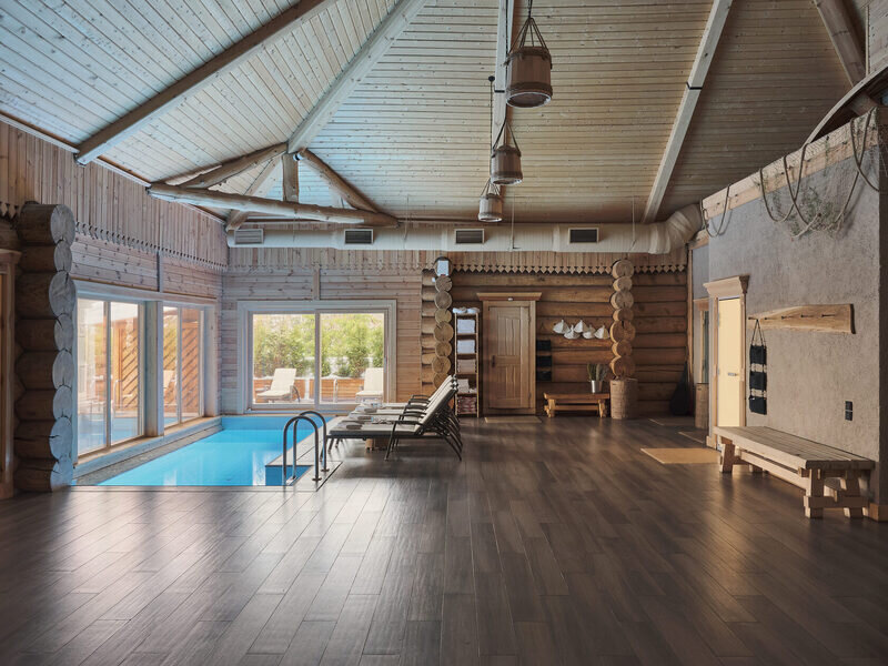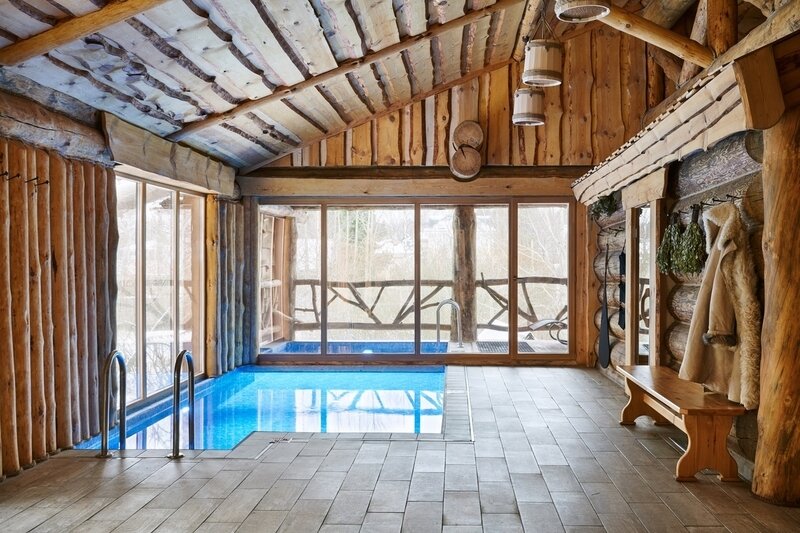 В аренду включено: целый банный дом, горячая парная, банный комплект, ароматная косметика, вкусные напитки и полезные снеки, подготовленные купели и бассейн.