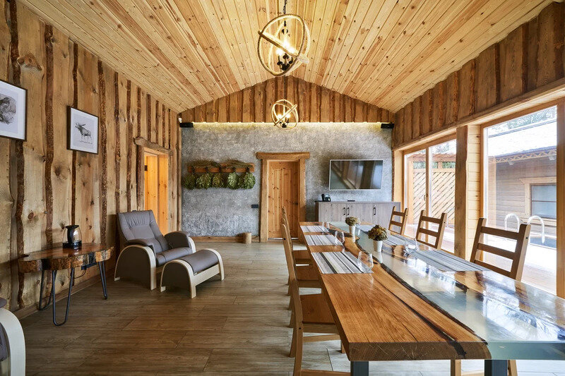 Читать полностьюПросторный комплекс с комнатами для банных процедур и комфортного отдыха в компании. Барельефы с сюжетами из жизни русских князей, большой бассейн с видом на хвойный лес и терраса под открытым небом зададут атмосферу после жаркой бани. Для ценителей есть и алтайская парная, обшитая липовыми досками: мягкий целебный пар с медовыми нотами успокоит и согреет как тело, так и душу. Вместимость: 22 гостя.
