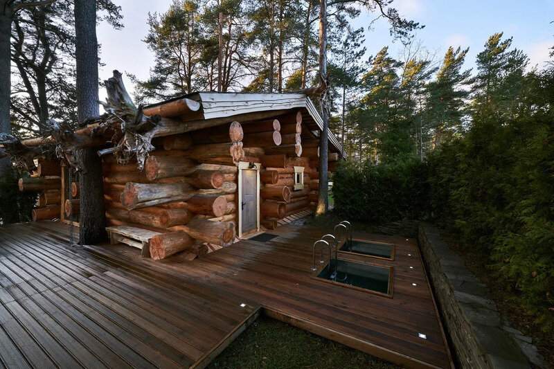 Большая и ухоженная территория, хвойный лес и близость Финского залива, совсем недалеко от культурной столицы, располагают к отдыху. Гости также могут посетить обширный и по-настоящему впечатляющий банный комплекс и ресторан русской и европейской кухни.