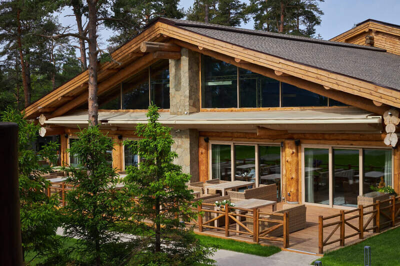 Читать полностьюБлюда русской и европейской кухни, в широком разнообразии представленные в меню, готовятся на дровяной печи из свежих фермерских продуктов. В барном меню ресторана представлен широкий ассортимент крепких алкогольных и безалкогольных напитков, изысканных алкогольных коктейлей и согревающих горячих напитков. Все здесь создано с любовью к природе и находится в гармонии с ней: в отделке преимущественно использовано натуральное дерево и камень, а с дизайнерской мебелью прекрасно сочетаются живые растения. В панорамных окнах вы можете видеть сосновый бор.