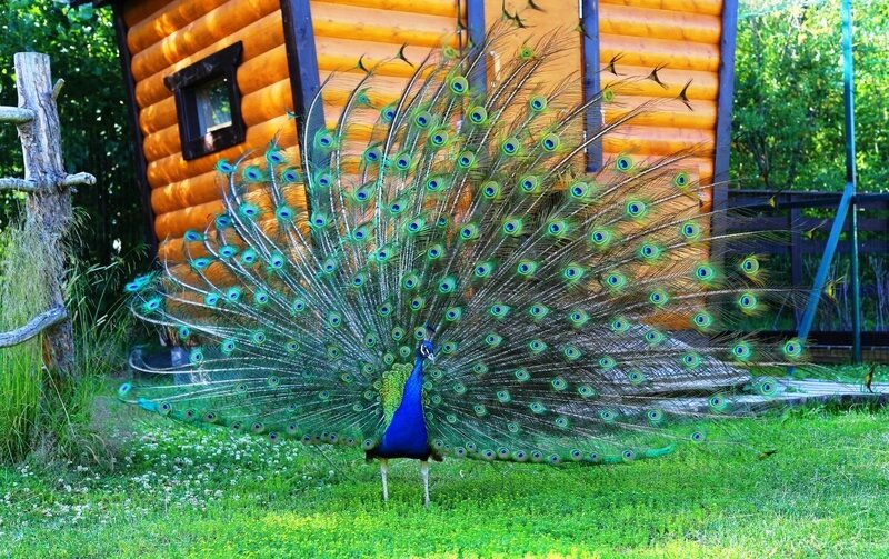 На ферме большой птичий двор. Здесь можно встретить павлинов, фазанов. На птичьем дворе обитает и домашняя птица – утки, гуси, индюшки и куры разных пород. Также здесь проживают пасхальные куры, которые несут цветные яйца.