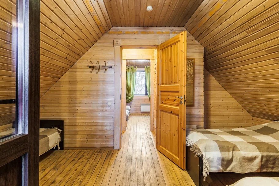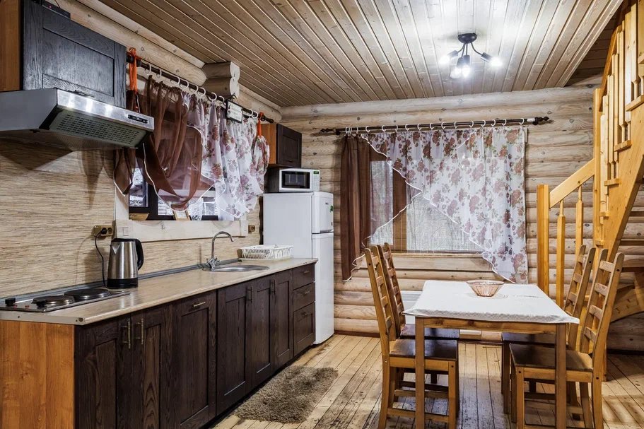 Предлагается 6 деревянных коттеджей, оборудованных современной бытовой техникой, компактной сауной на четырех человек, уютной мебелью и дровяным камином.