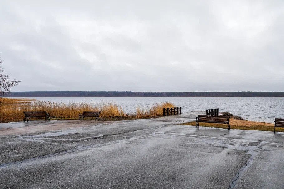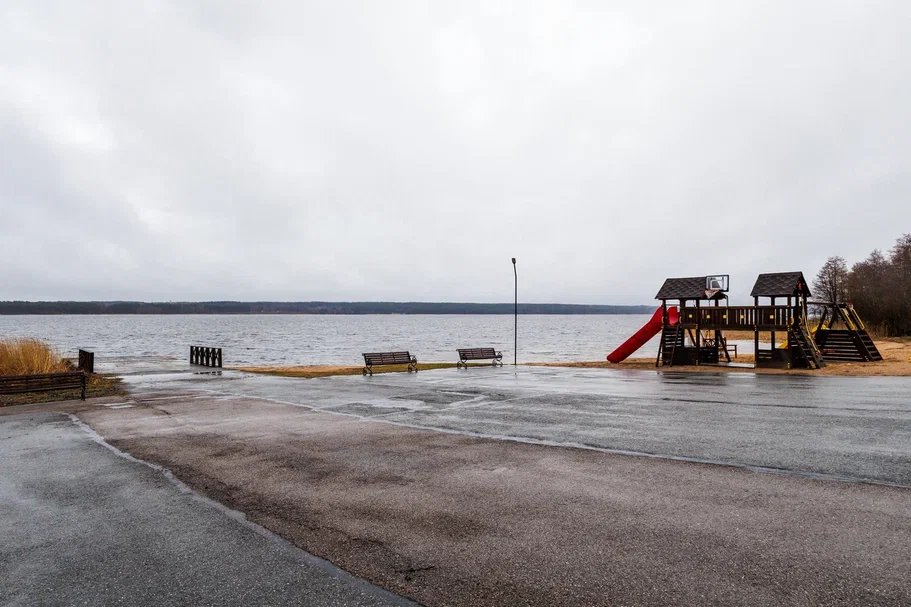 Пляж на берегу озера
