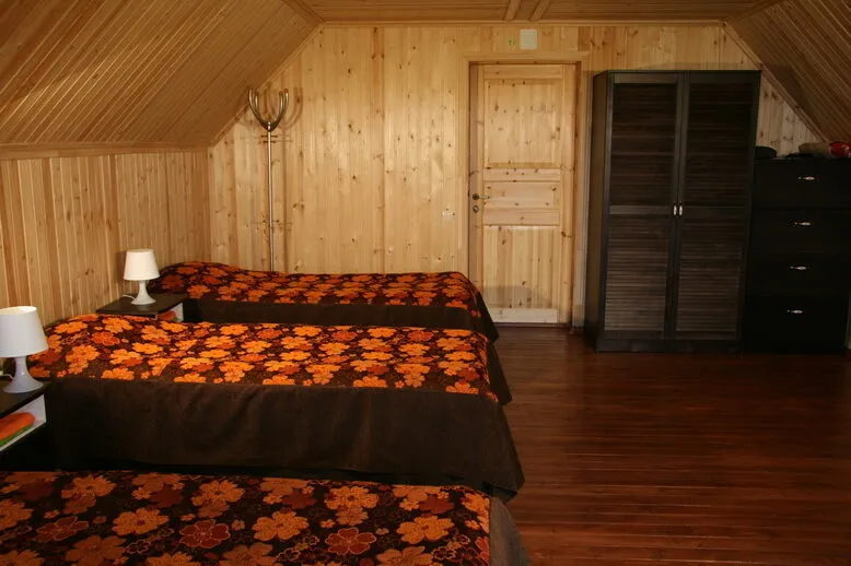 Гостям базы отдыха «Бурная Ладога» предлагается для проживания гостевой дом, который можно арендовать полностью или по секторам, поскольку на второй этаж ведет отдельный вход с улицы. На первом этаже коттеджа расположено шесть спальных комнат, гостиная, а в мансарде расположены две комфортабельных спальни, гостиная и терраса. Первый этаж – «Уют-компания» (6 отдельных двухместных комнат, вместимость до 12 человек).