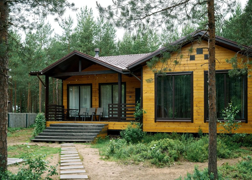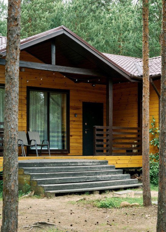 Дом Хвоя расположен на берегу журчащего ручья и вблизи озера – пешком всего 5 минут, по адресу: Ленинградская область, г. Сертолово.