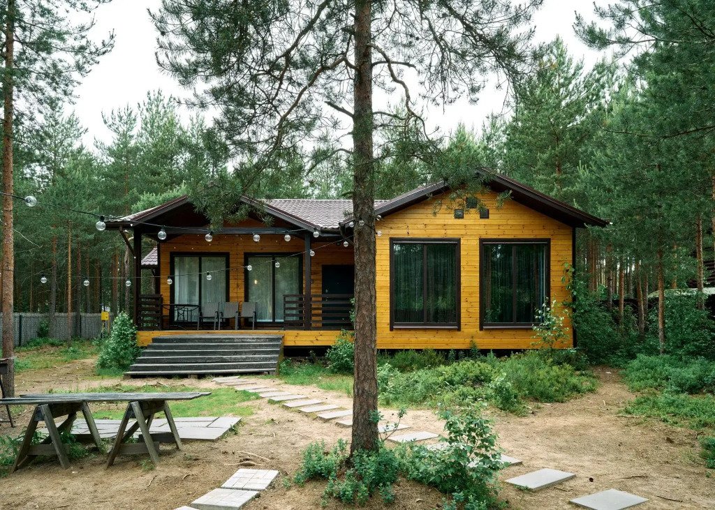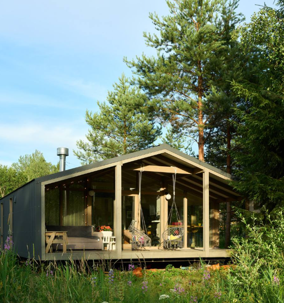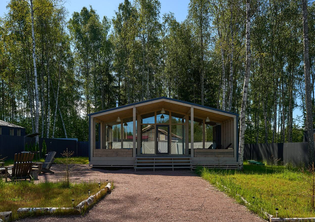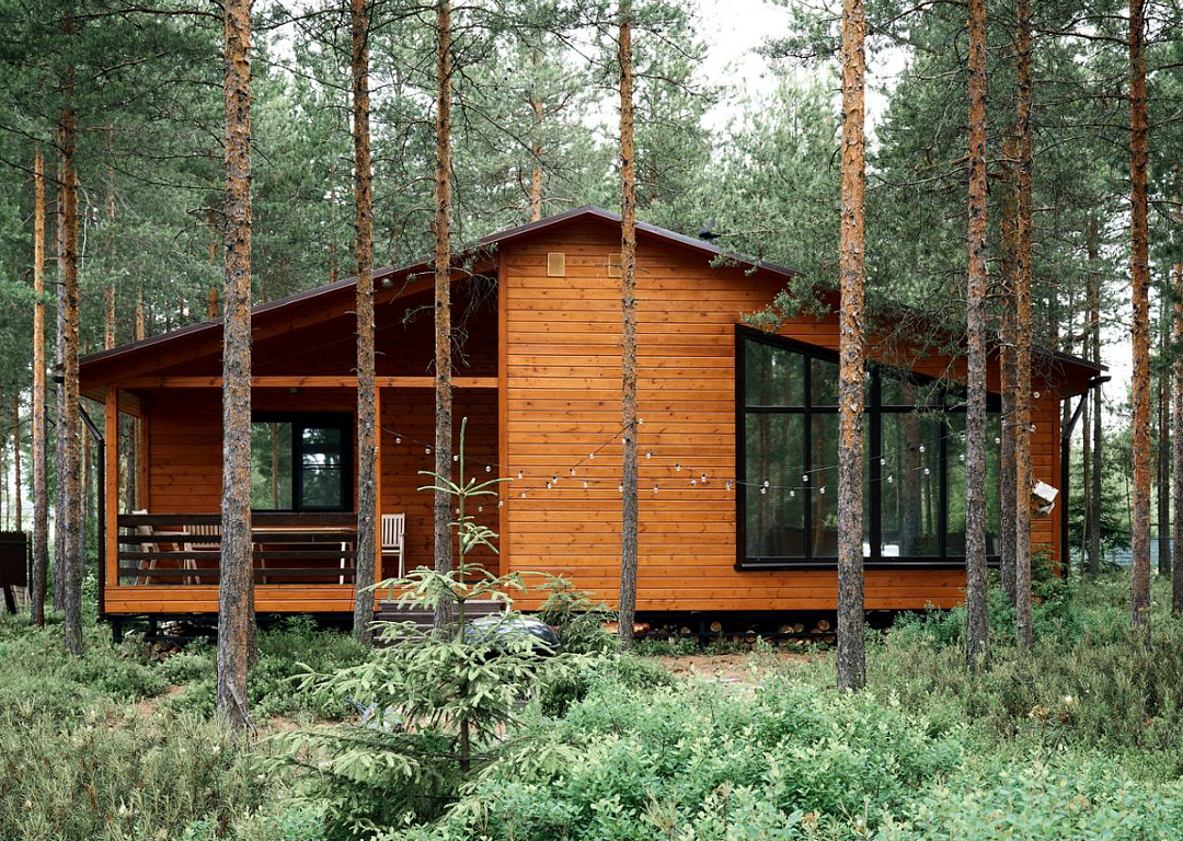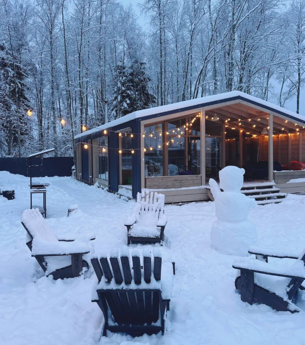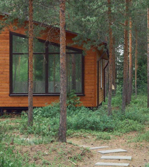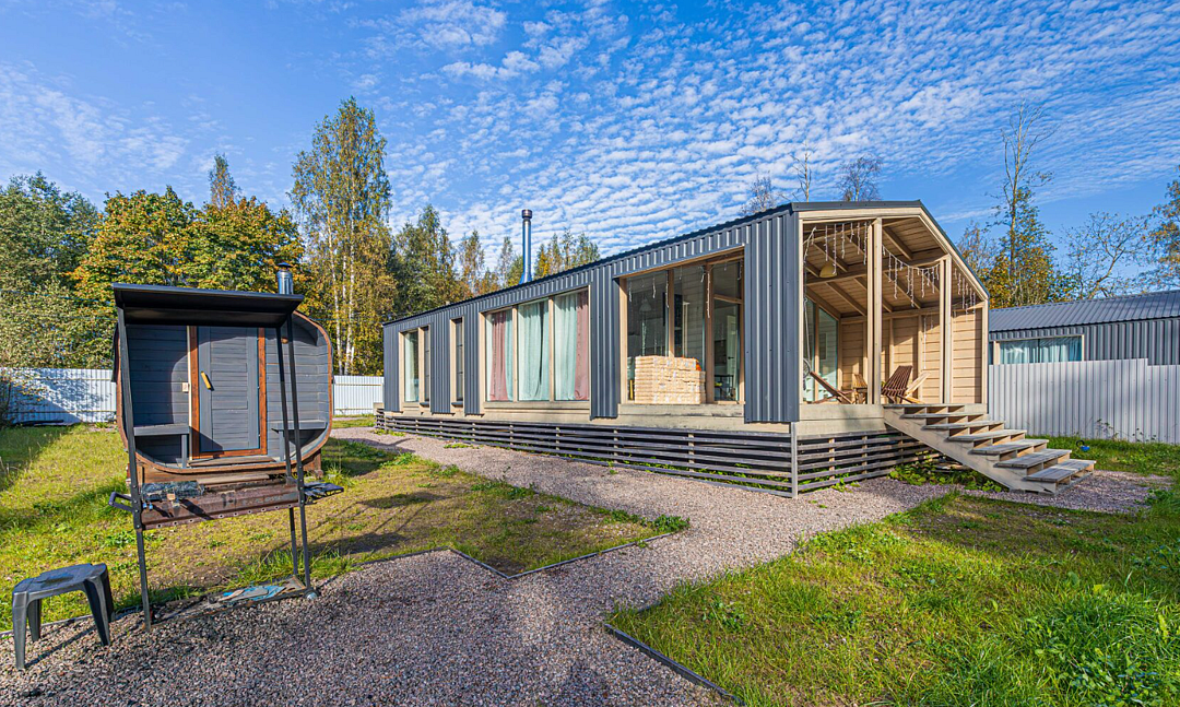 Дом Луна с баней в окружении леса. Комфортный отдых в скандинавском интерьере и заповедной тишине природы. Расположен по адресу: г. Сертолово, ул. Абрикосовая.