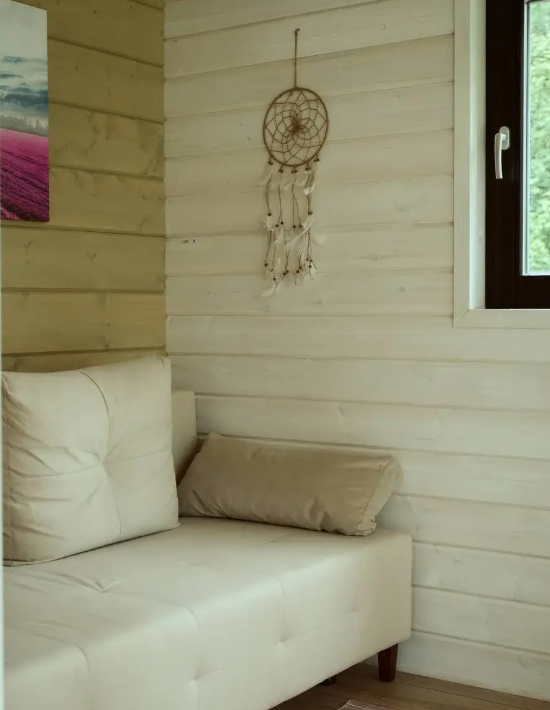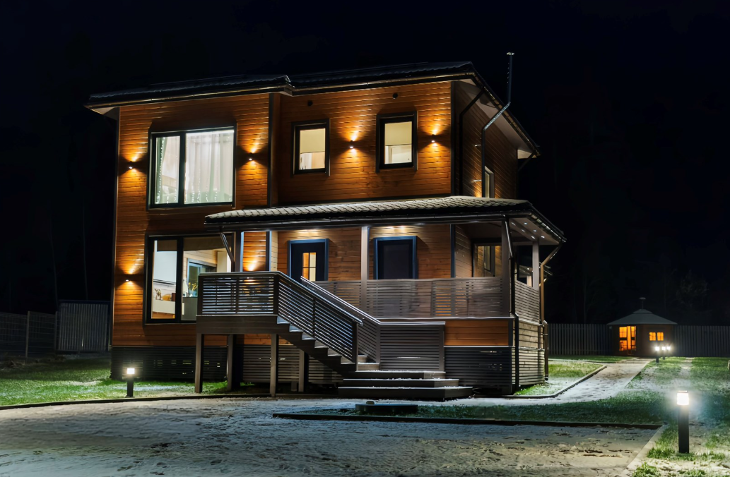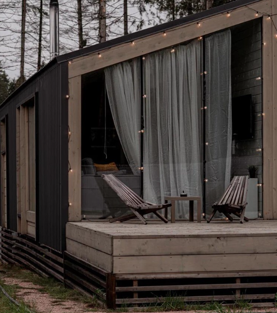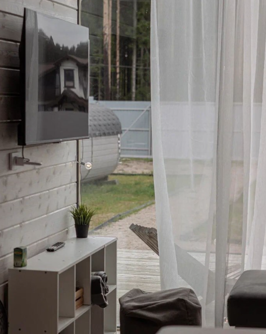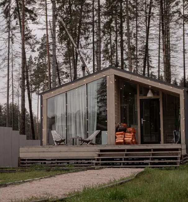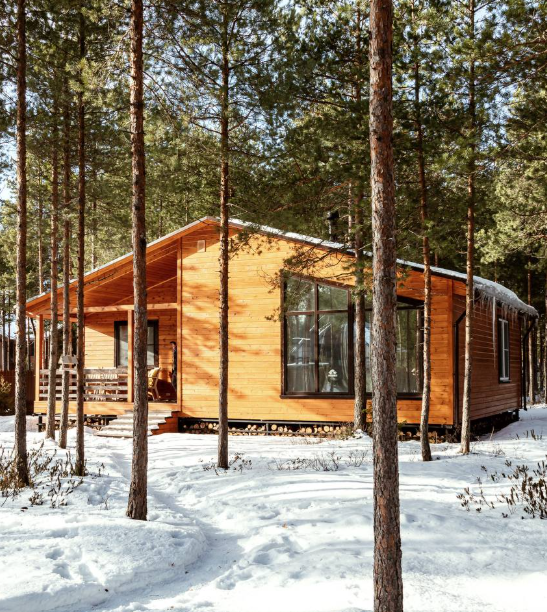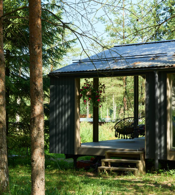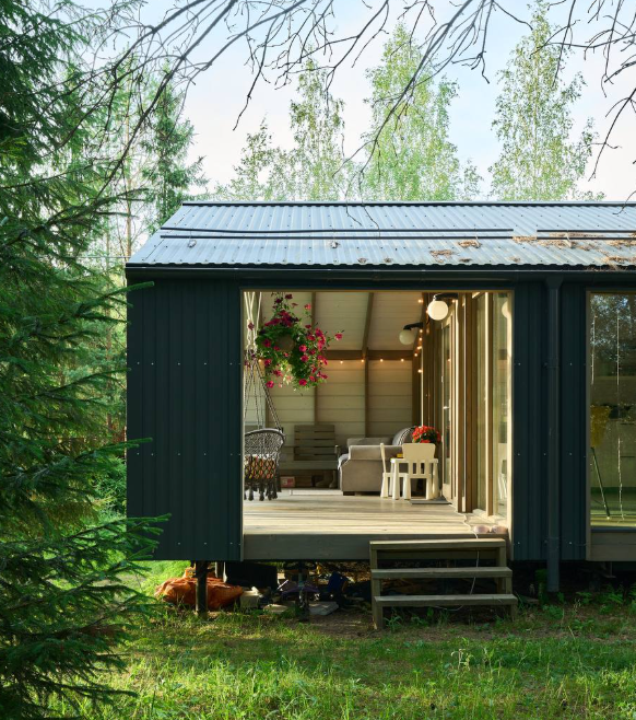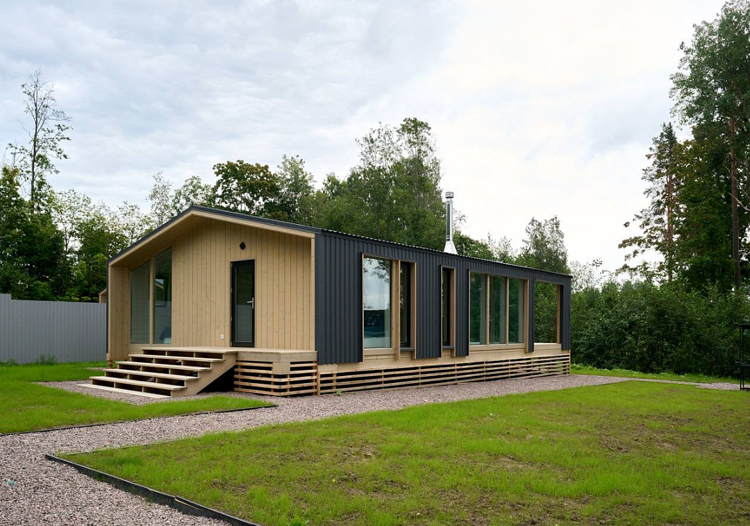 Дом Луна с баней в окружении леса. Комфортный отдых в скандинавском интерьере и заповедной тишине природы. Расположен по адресу: г. Сертолово, ул. Абрикосовая.