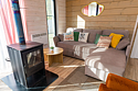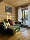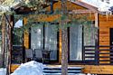 На участке: гриль-зона, шезлонги, забор по всему периметру. Дополнительно: можно заказать баню и чан на соседнем участке. Внутри для отдыха – 2 спальни с двуспальными кроватями, одна гостевая комната с раскладным диваном , просторная кухня-гостиная с камином, санузел с ванной, большая терраса.