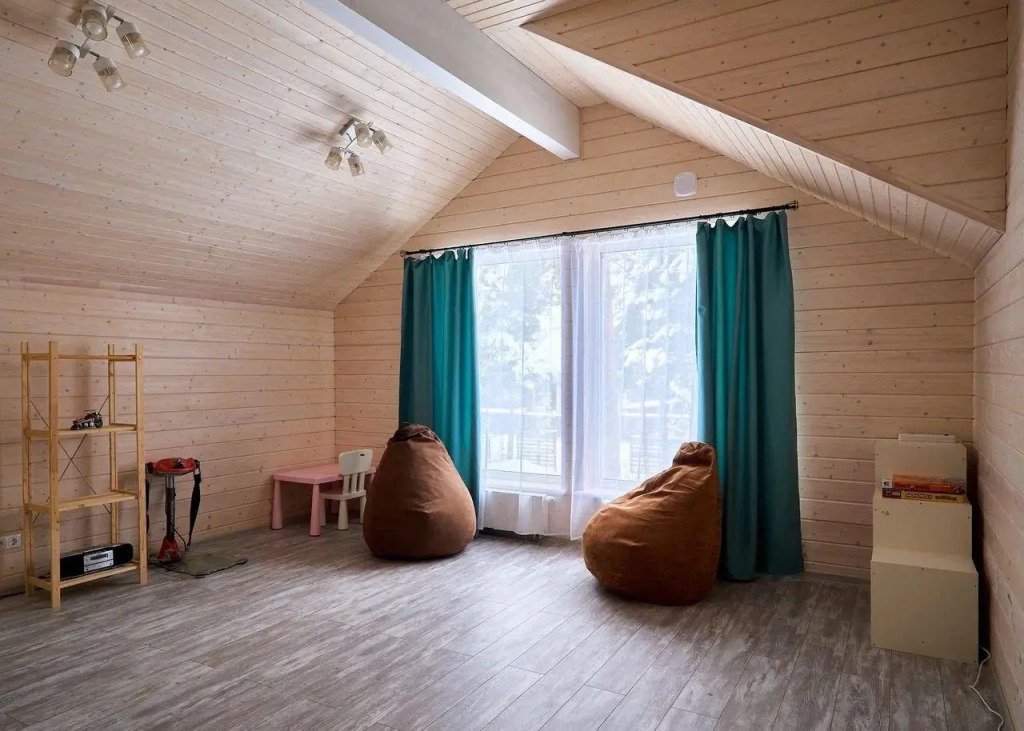 Закрытая территория, хвойный участок, уединенность и тишина. Современный дизайн удачно вписался в дом из натурального дерева. Из окна открывается живописный пейзаж хвойного леса. Дом комфортно разместит до 6 человек. В поселке есть озеро, лес, спортивные и детские площадки.