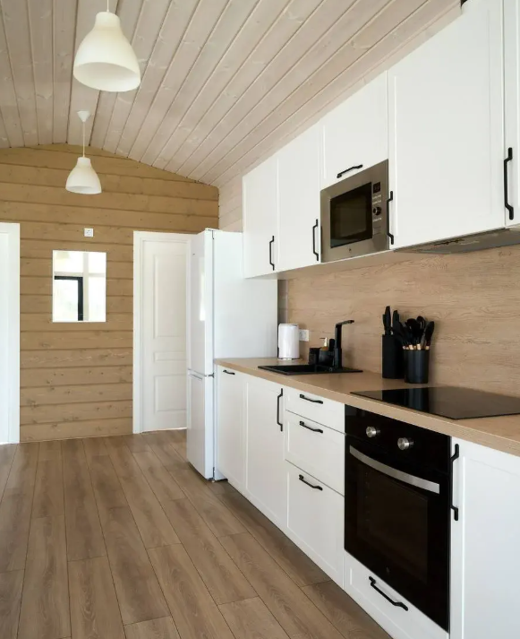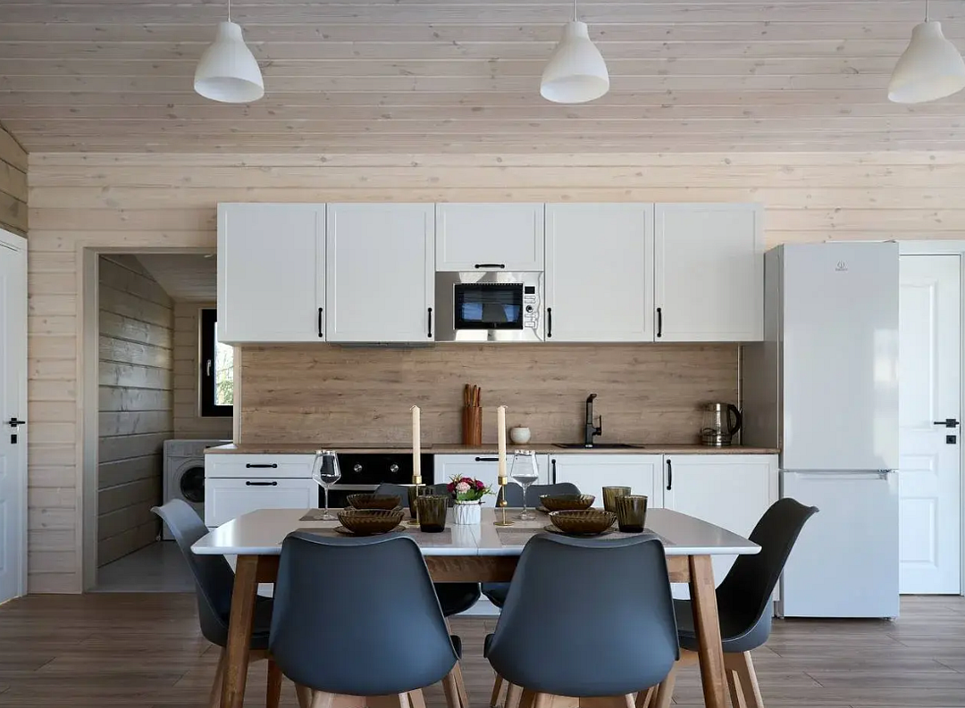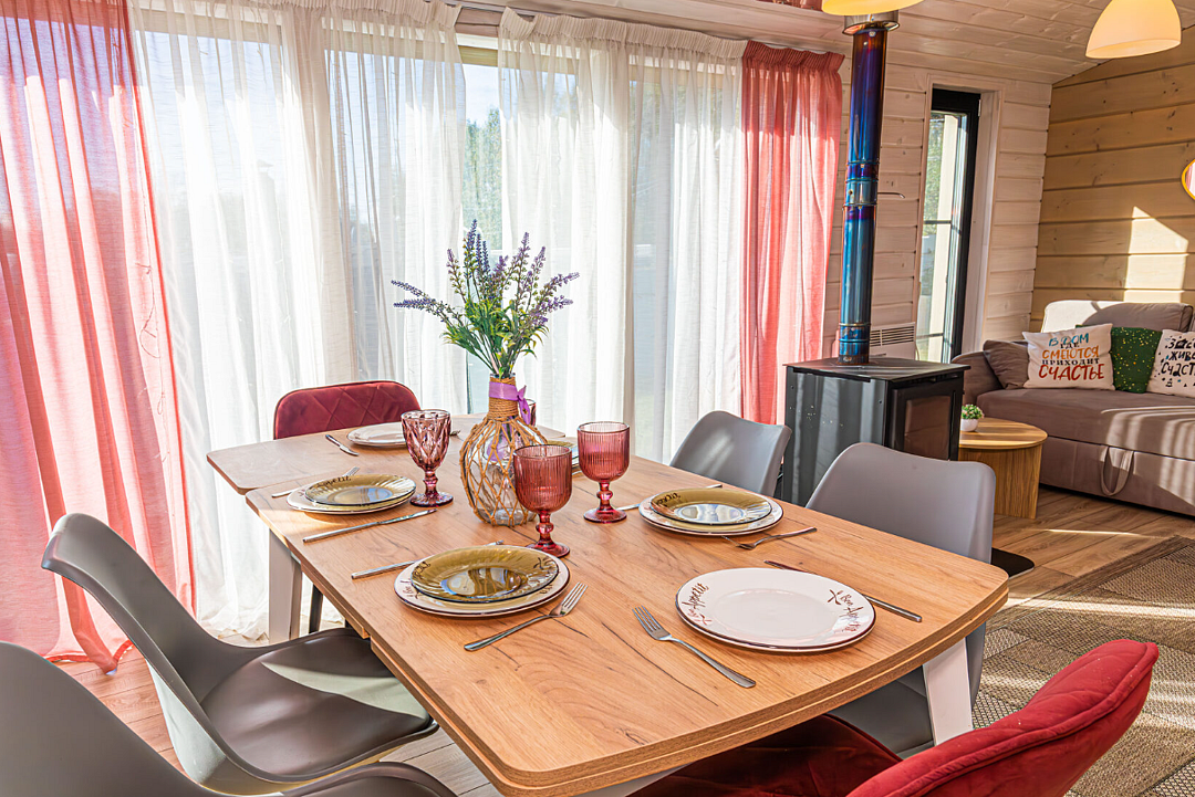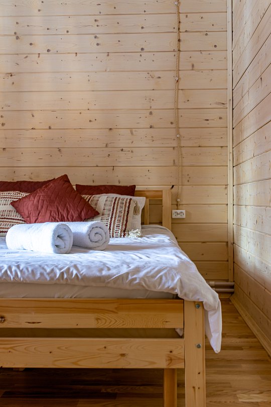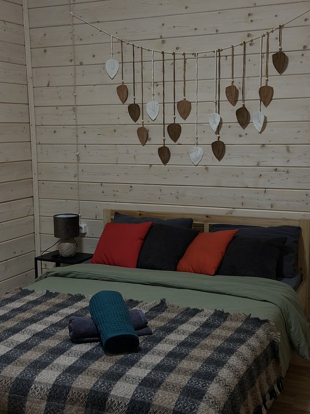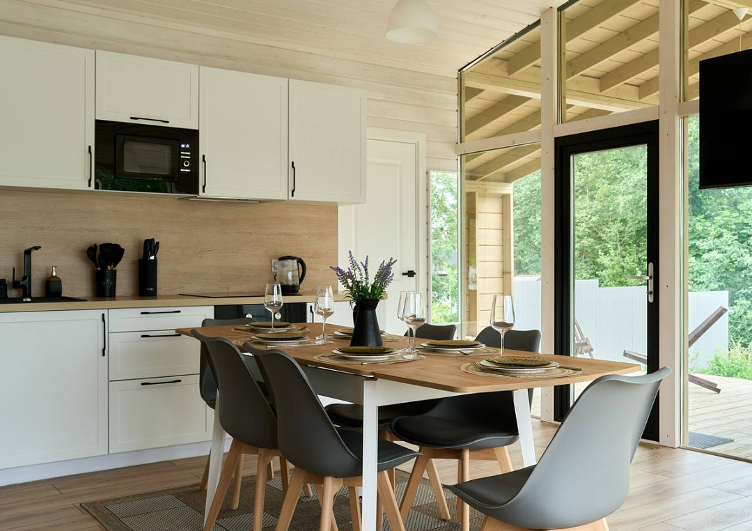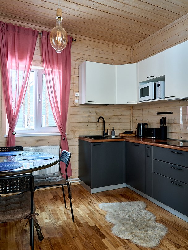 В каждом доме есть качественное постельное белье и полотенца, пледы, дрова и брикеты для камина, оборудованные кухни (вся необходимая посуда, специи, масло, соль-сахар, чай).