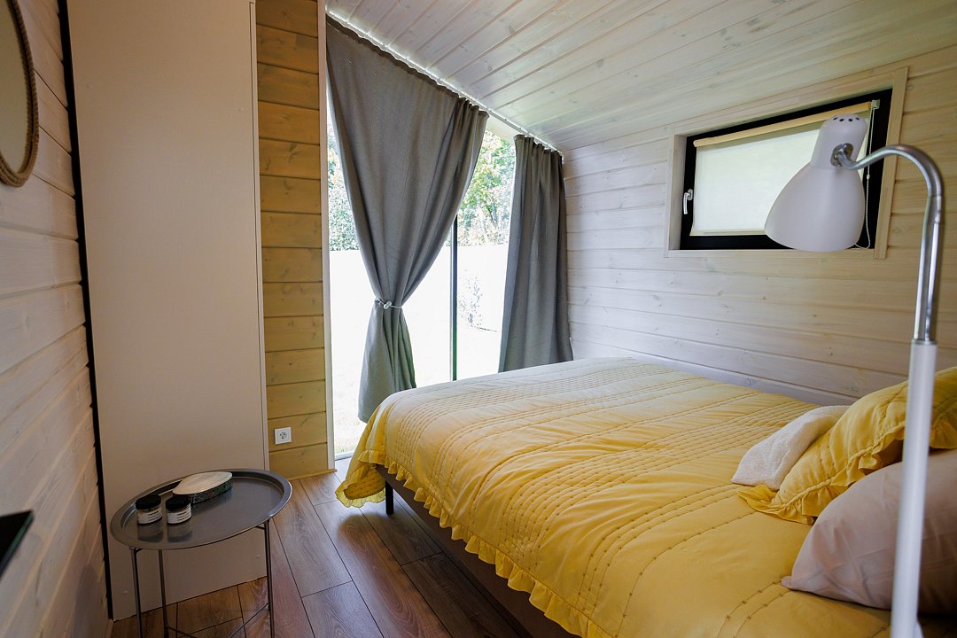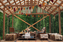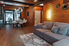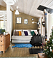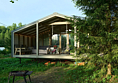 В доме 2 отдельные спальни, кухня-гостиная с камином. Из панорамных окон открывается чудесный вид на лес и ручей.