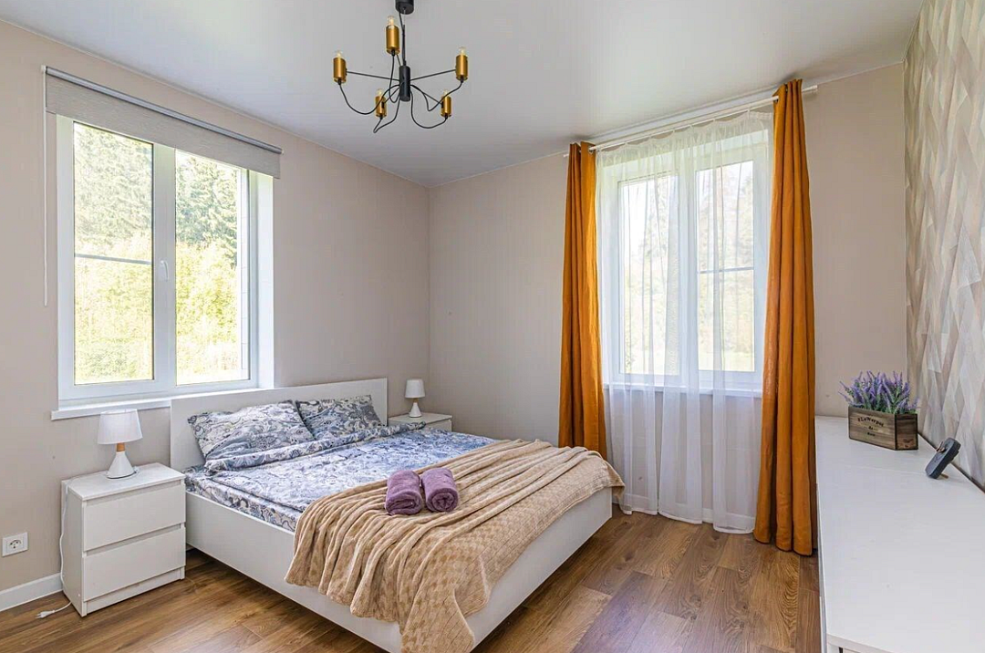 В доме две спальни с двуспальными кроватями, просторная гостиная с раскладным диваном, камином и обеденным столом. Скоростной интернет, бытовая техника, вся необходимая посуда, смарт телевидение, колонка Алиса.
