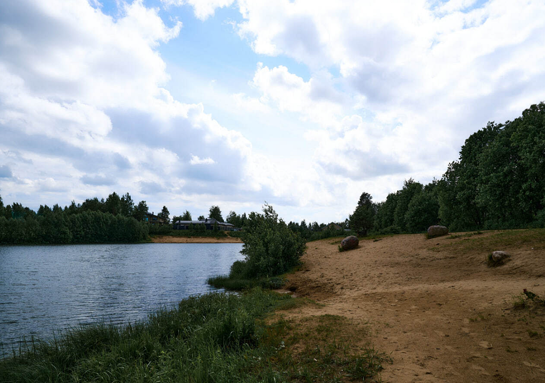 Дом Локус с двумя спальнями, гостевой комнатой и кухней-гостиной с камином. На участке баня на дровах. Терраса с шезлонгами и с видом на лес. В пешей доступности лес для прогулок, конюшня и озеро.