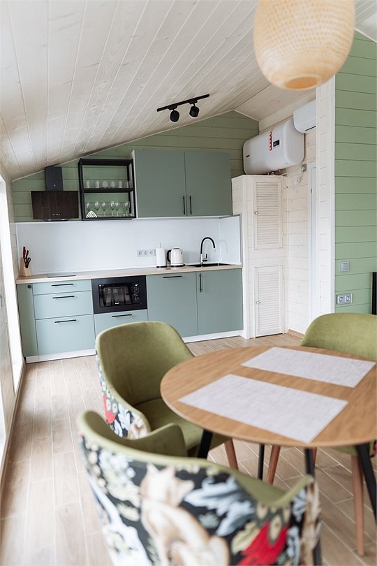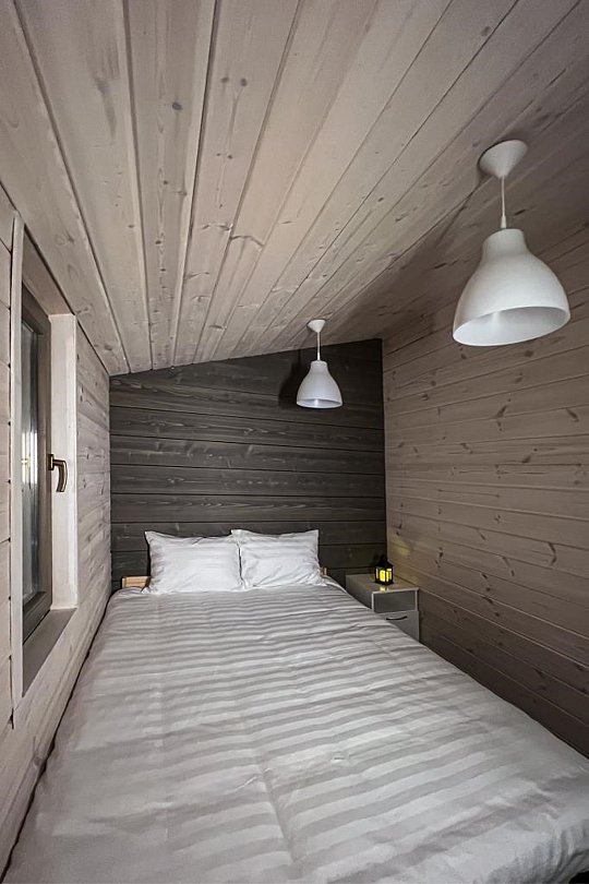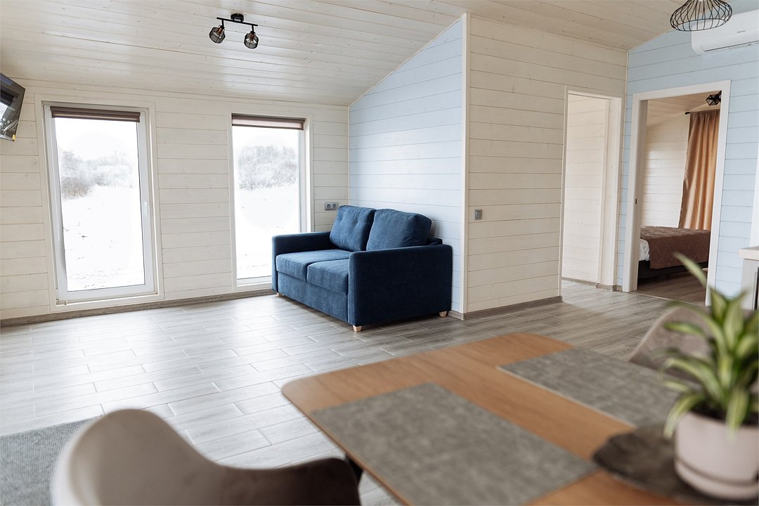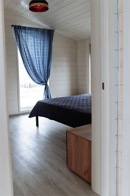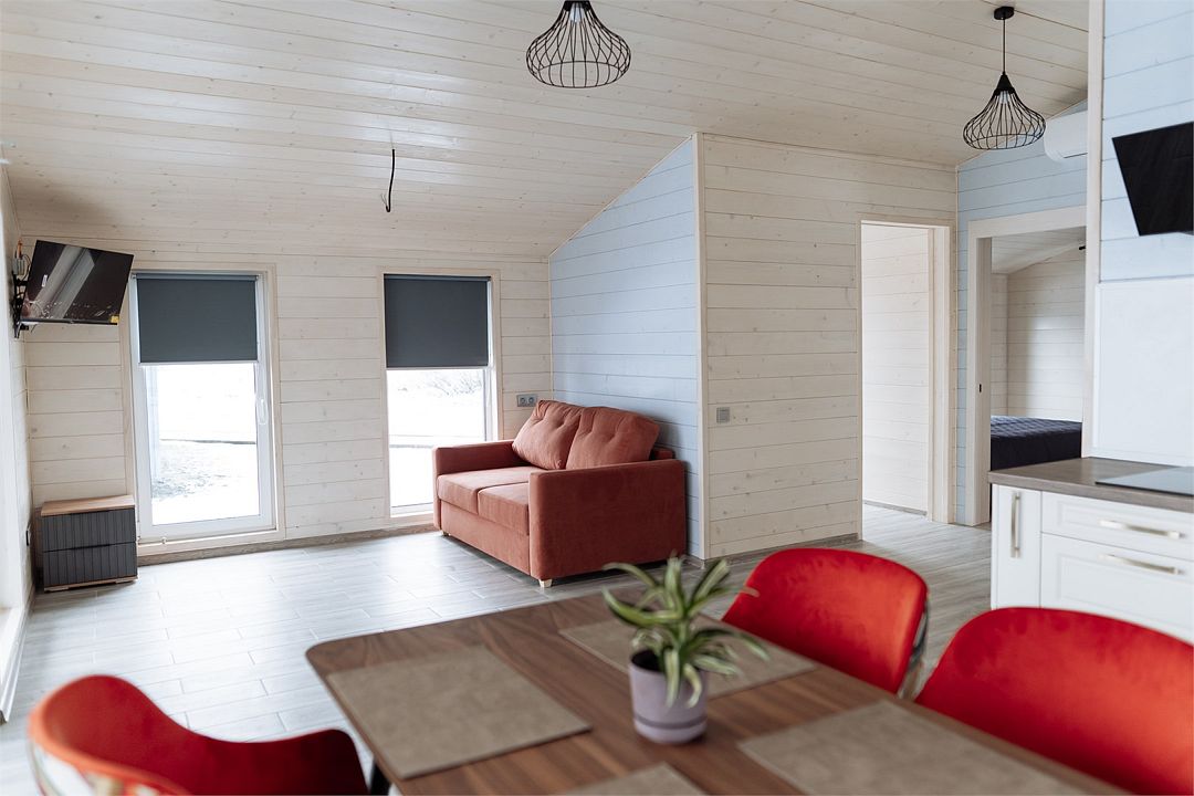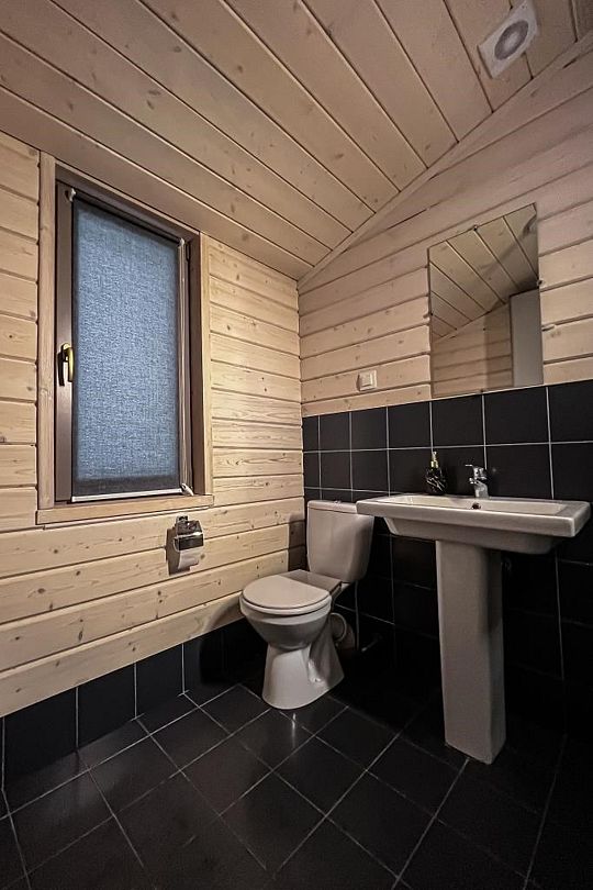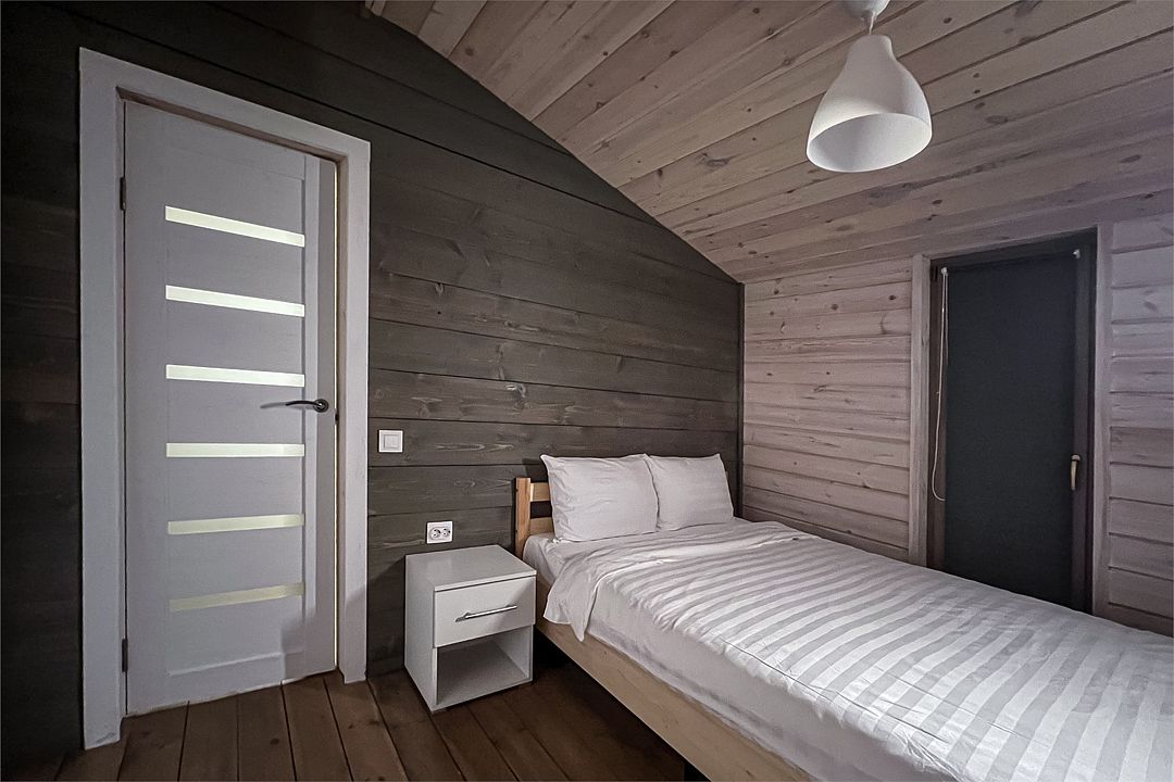 Коттедж на охраняемой территории базы отдыха «Царская Рыбалка» с видом на озеро, персональной террасой и отдельной мангальной зоной, рассчитанный на 4-6 человек.