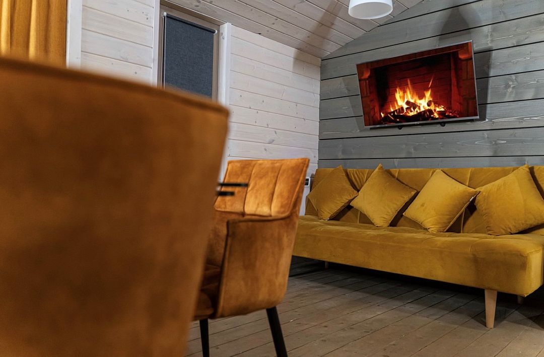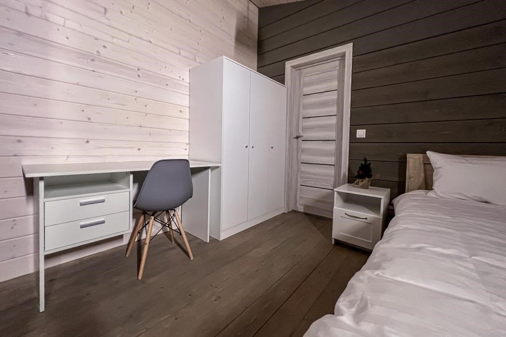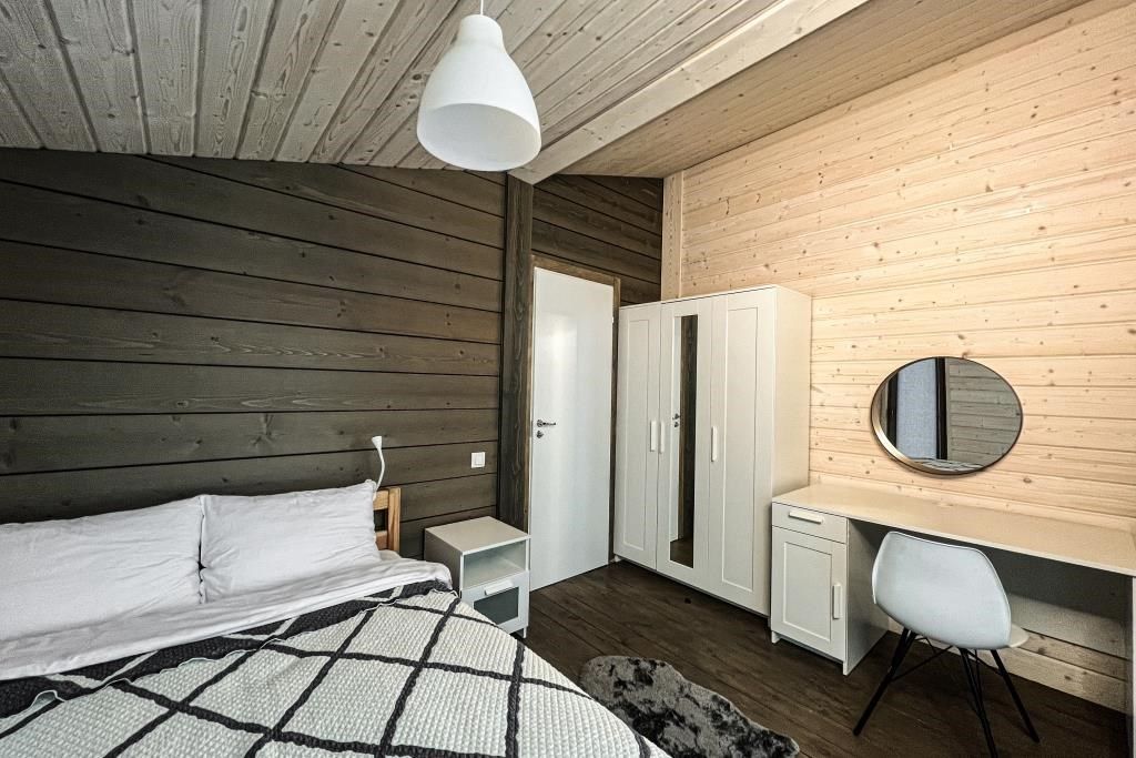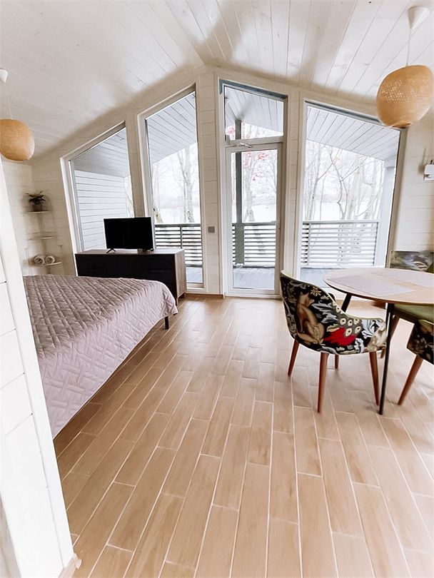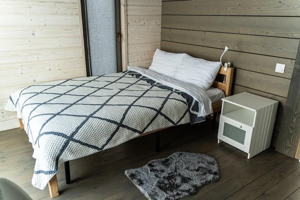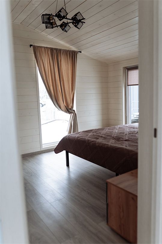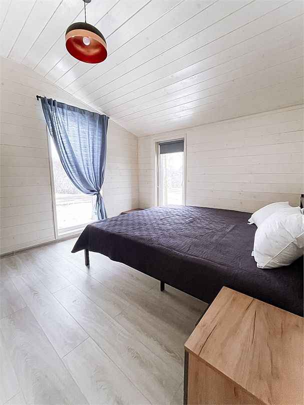 Коттедж на охраняемой территории базы отдыха «Царская Рыбалка» с видом на озеро, персональной террасой и отдельной мангальной зоной, рассчитанный на 4-6 человек.