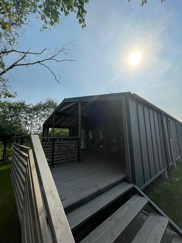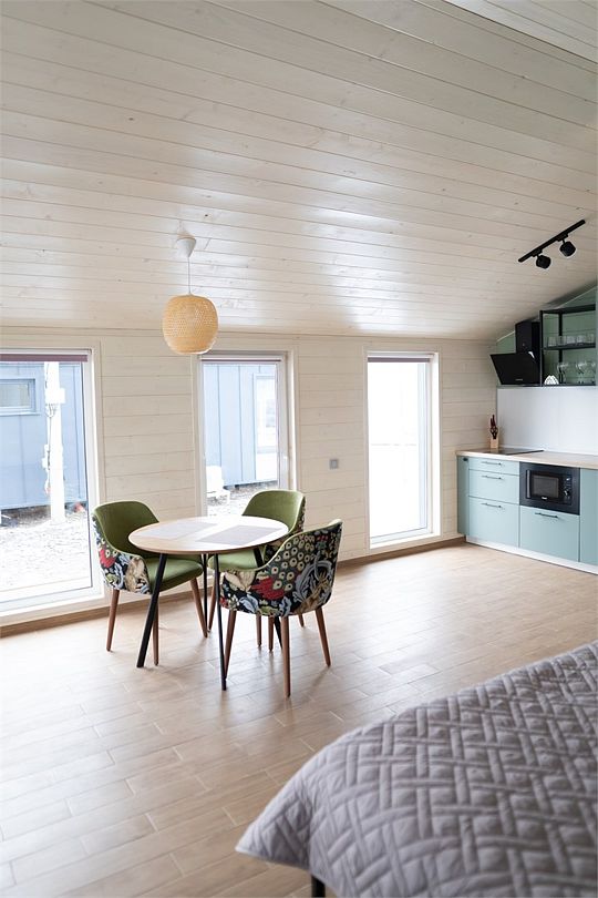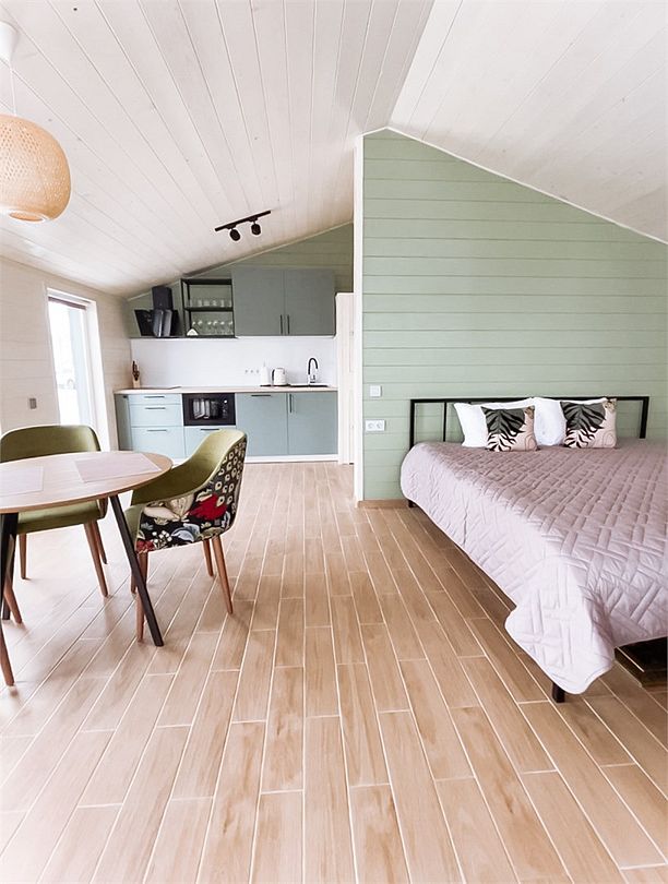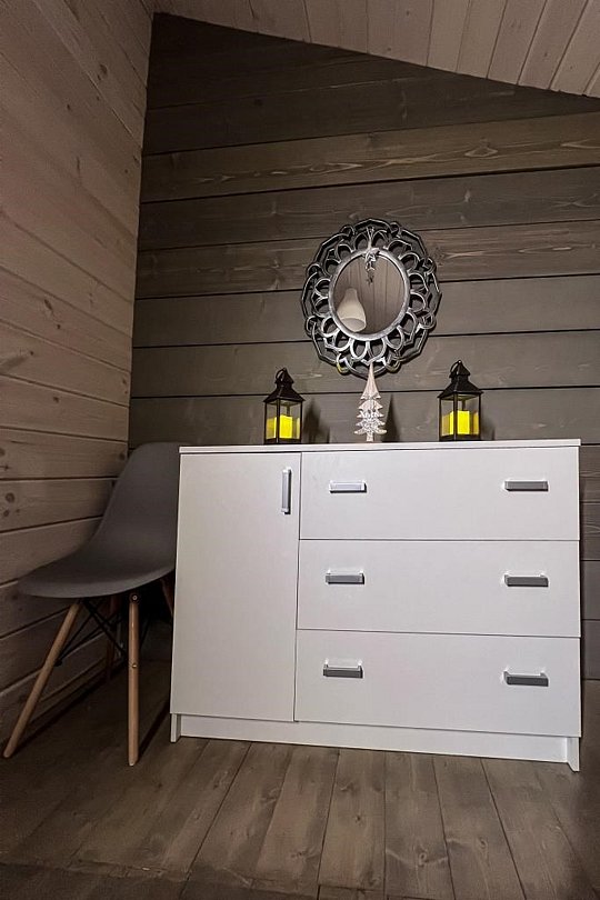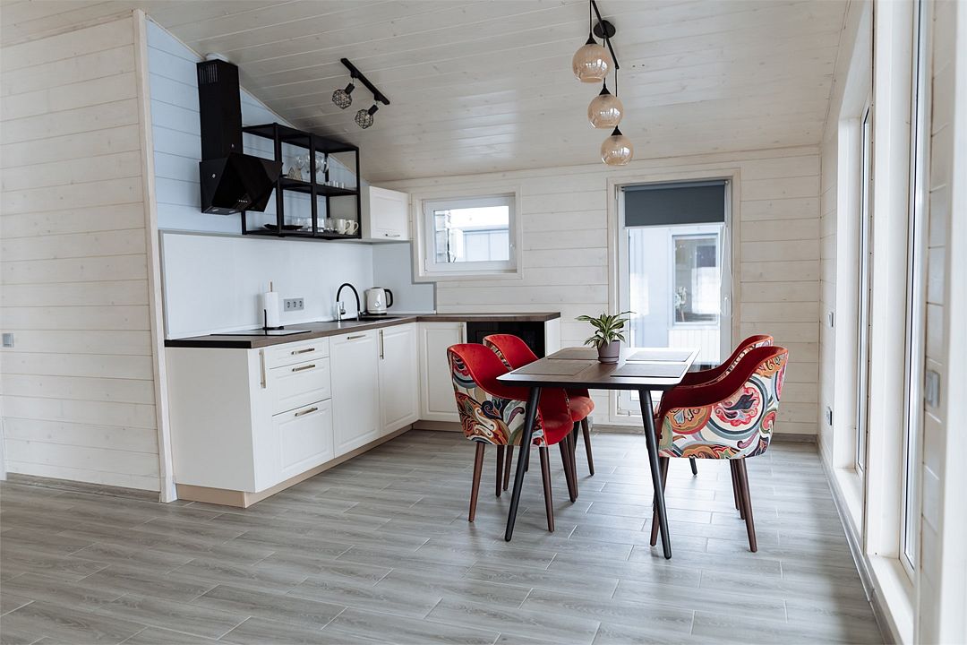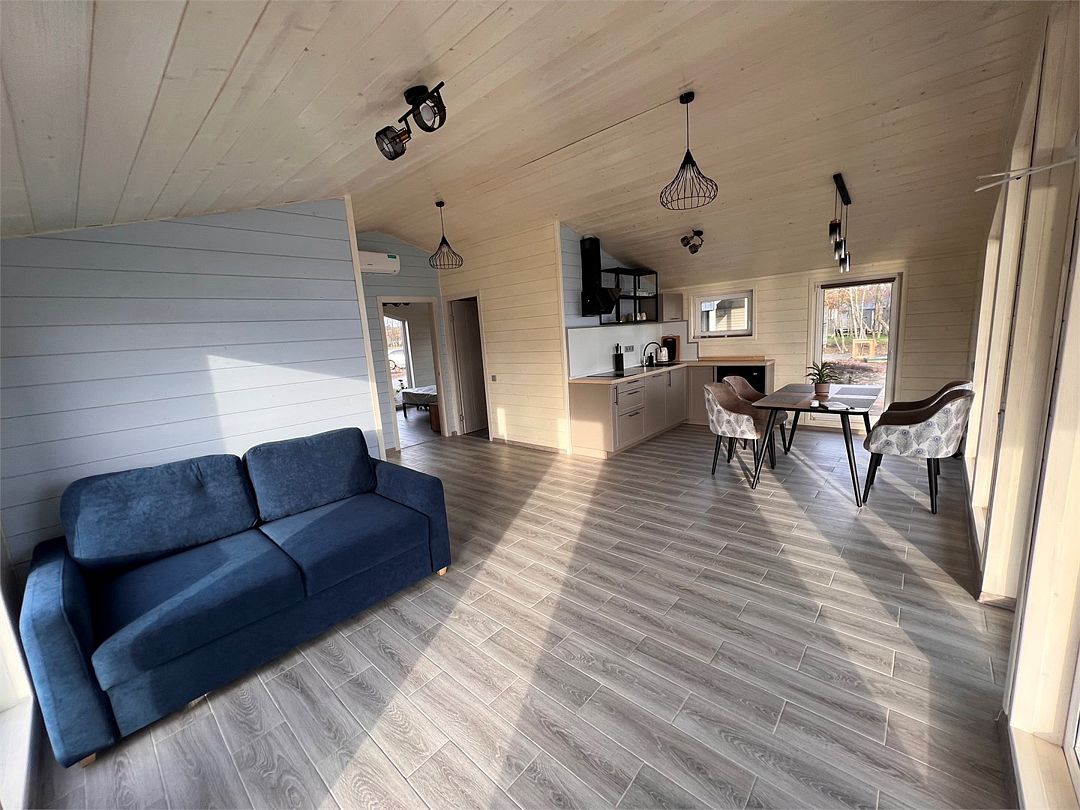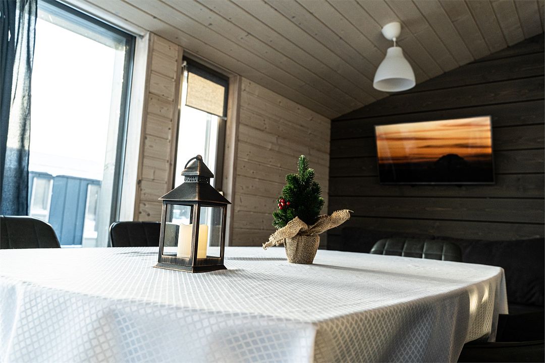 Коттедж на охраняемой территории базы отдыха «Царская Рыбалка» с видом на озеро, персональной террасой и отдельной мангальной зоной, рассчитанный на 4-6 человек.