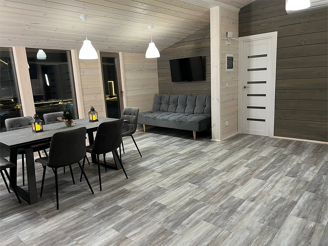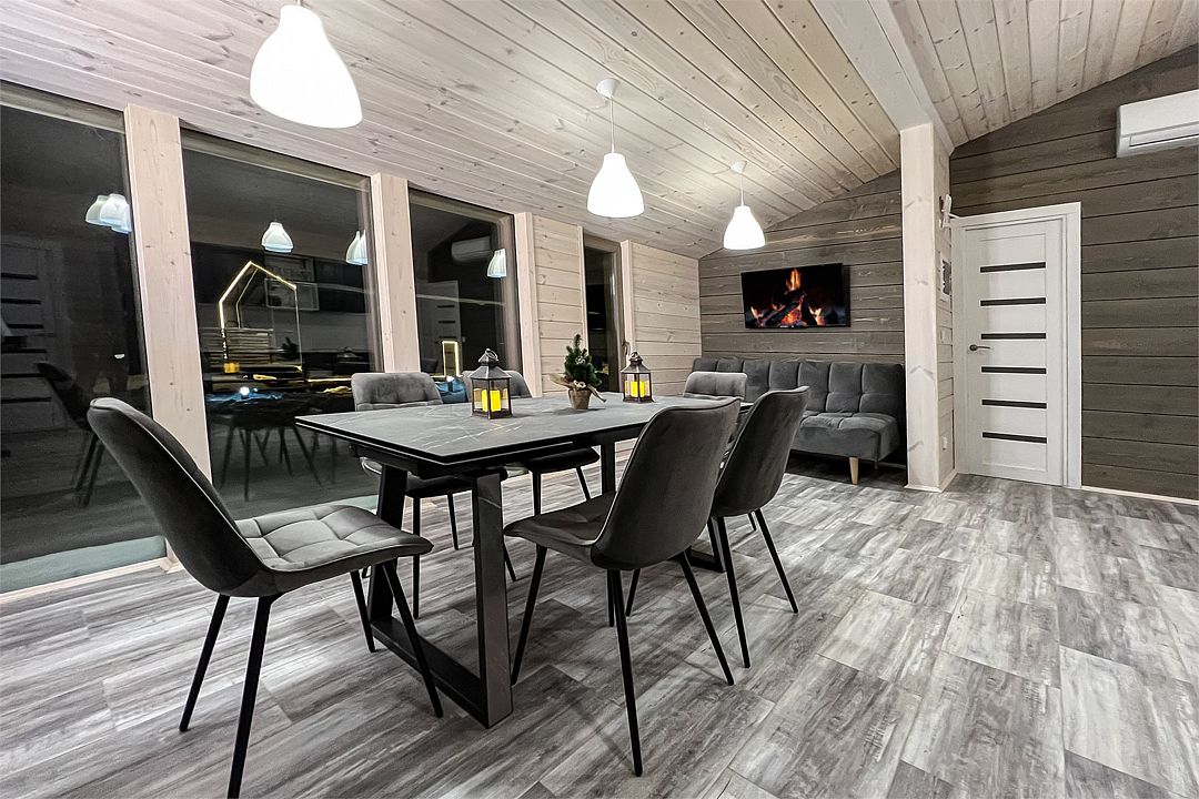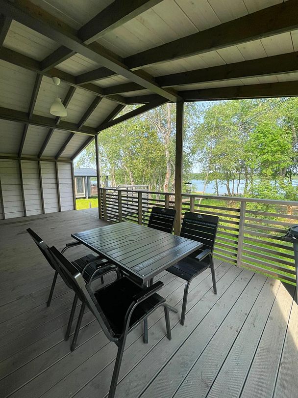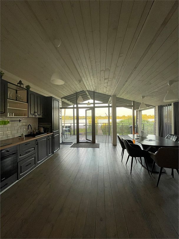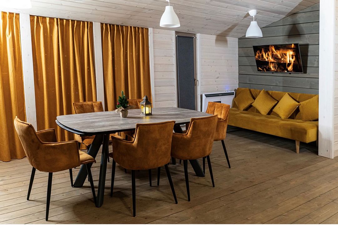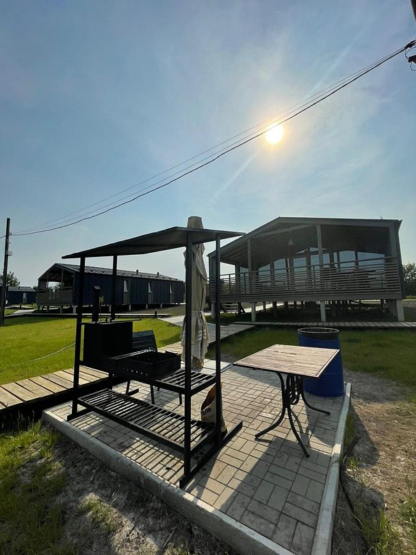 Коттедж на охраняемой территории базы отдыха «Царская Рыбалка» с видом на озеро, персональной террасой и отдельной мангальной зоной, рассчитанный на 6-8 человек.