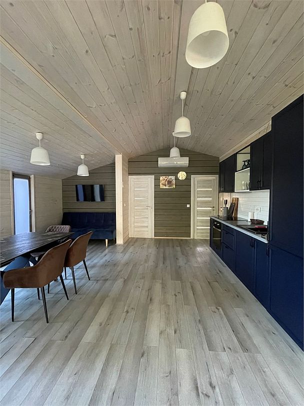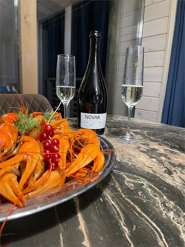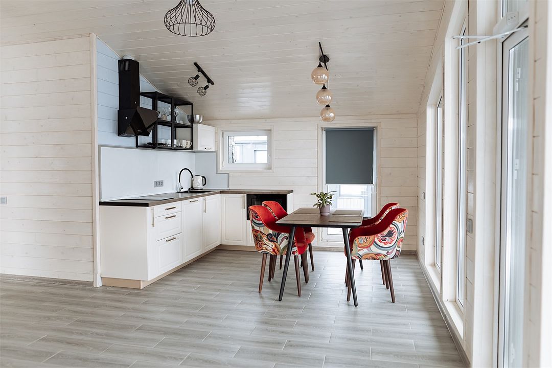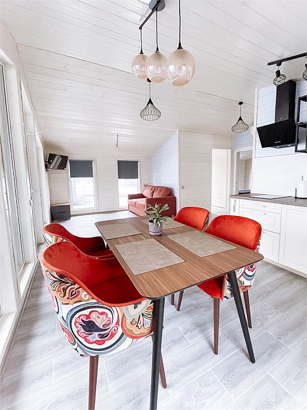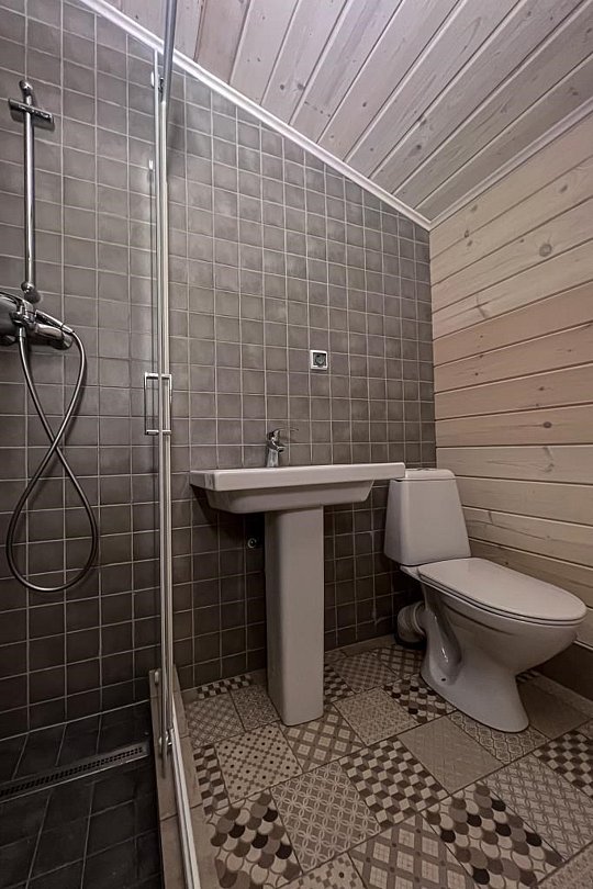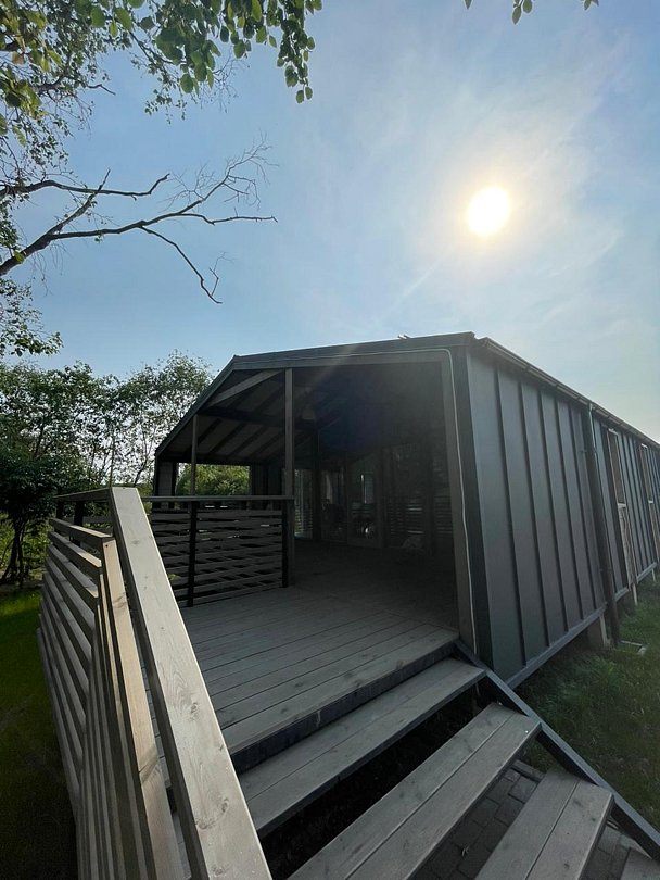 Коттедж на охраняемой территории базы отдыха «Царская Рыбалка» с видом на озеро, персональной террасой и отдельной мангальной зоной, рассчитанный на 6-8 человек.
