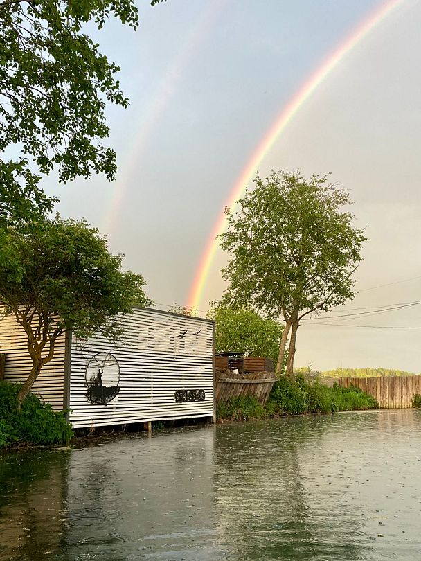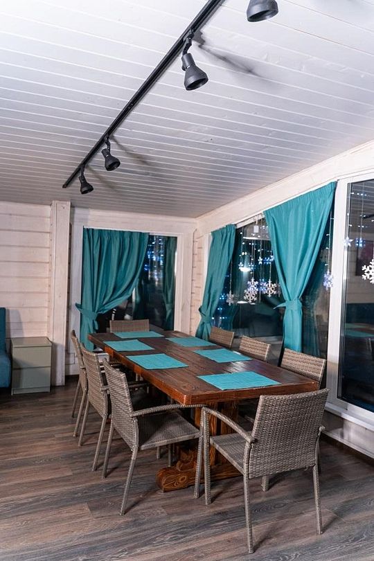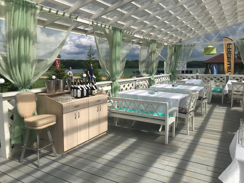В зале 30 посадочных мест, а летом вы можете разместиться на комфортабельной террасе, беседках на воде.