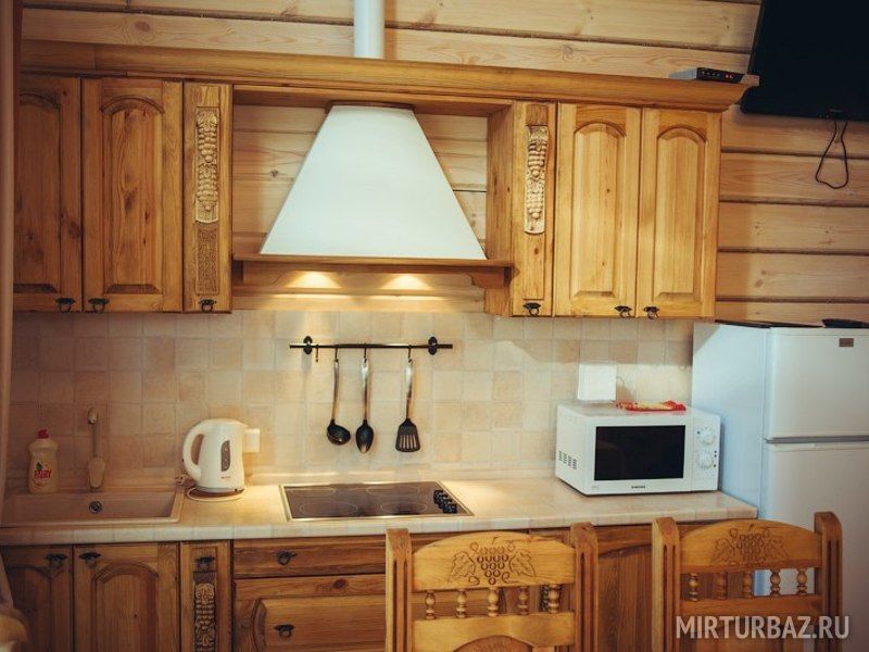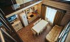 Боярский коттедж — это уютный одноэтажный дом, состоящий из двух спален, кухни-гостиной с панорамными окнами, небольшой террасы, прихожей, сауны, а также санузла, совмещённого с душем.