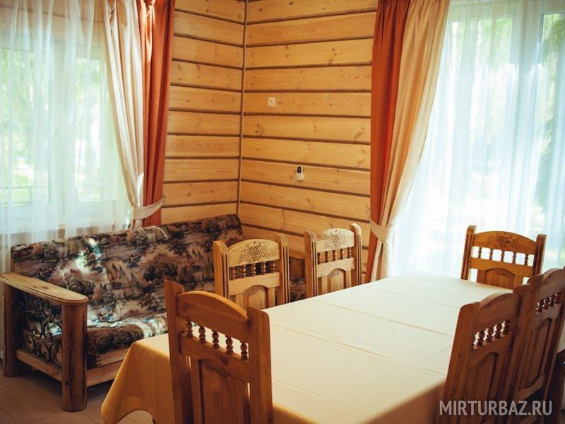 Княжеский коттедж - это одноэтажный дом, состоящий из трех спален, оснащённых широкими двухспальными кроватями, просторной гостиной с панорамными окнами большим обеденным столом, диваном и телевизором, кухонной зоны, оборудованной всем необходимым для приготовления пищи. Также имеется просторная ванная комната, совмещённая с санузлом, прихожая и большая открытая терраса с уличной мебелью.