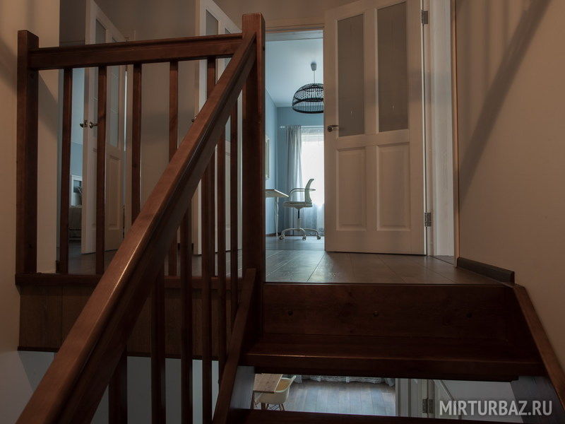 Каждая половина — 2-х этажный дом с четырьмя спальнями и кухней-гостиной.