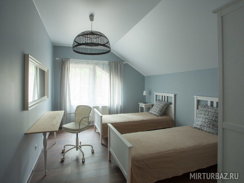 Светлый двухэтажный коттедж с четырьмя спальнями и кухней-гостиной со вторым светом. Подходит для размещения 8 гостей. Для малышей предусмотрена детская кроватка.