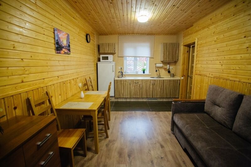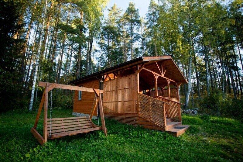 В вашем распоряжении — одноэтажный коттедж с видом на хвойный лес. В доме есть 2 комнаты и кухня-гостиная, рядом. Никакого шума и соседей, другие домики расположены на расстоянии 50 метров. До рыбного озера идти 5-7 минут.