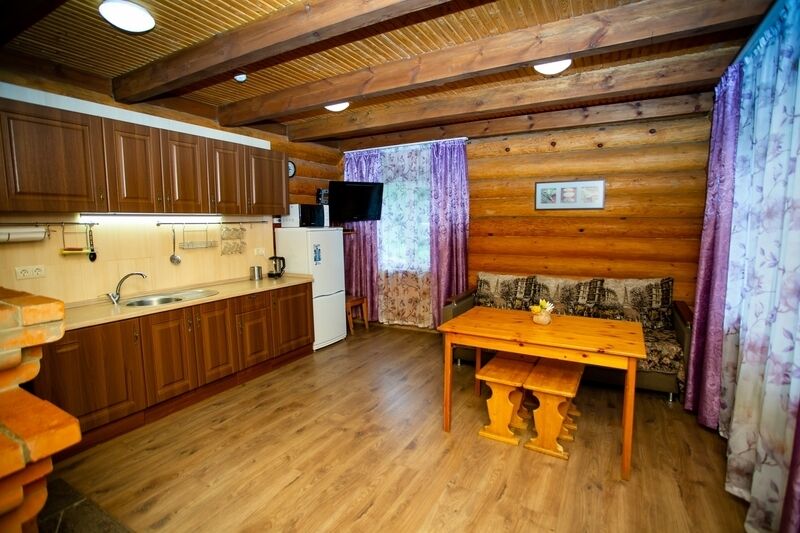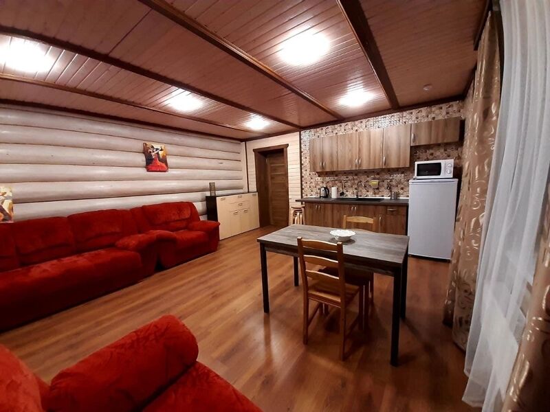 Одноэтажный коттедж-дуплекс (1/2). Подойдет для семейного отдыха или небольшой компании. Кроме уютной кухни-гостиной и спальни есть летняя веранда. До озера 300 м., до ресторана 200 м. Дом построен в 2019 году, свежий ремонт, новая сантехника и мебель.