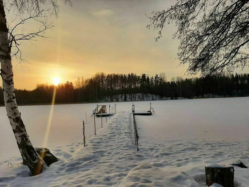В одноэтажном коттедже — две комнаты для сна, кухня-гостиная и душевая. Есть где погулять: 5 минут до озера и ресторана. Чистый воздух и тишина, рыбалка и барбекю — все, что нужно для отдыха от городского шума.
