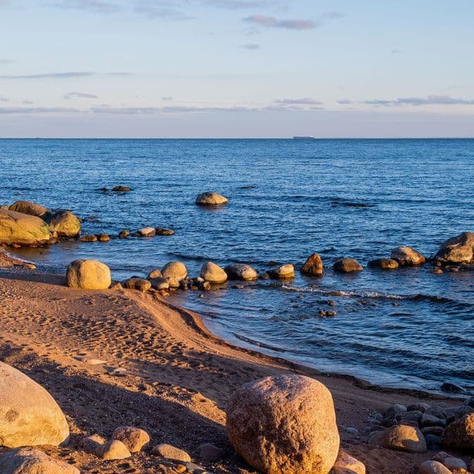 Всего за две минуты неспешной прогулки можно добраться до пустынного пляжа Финского залива.