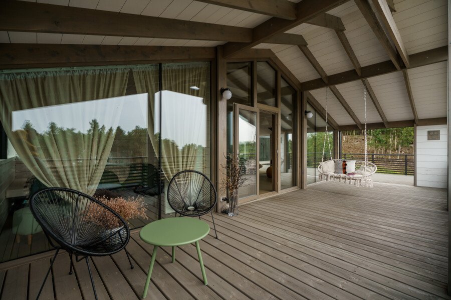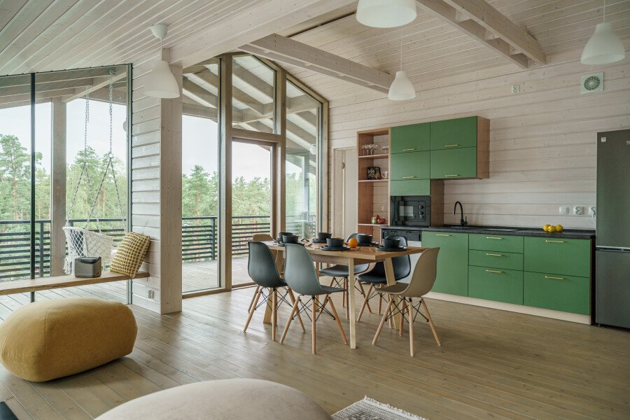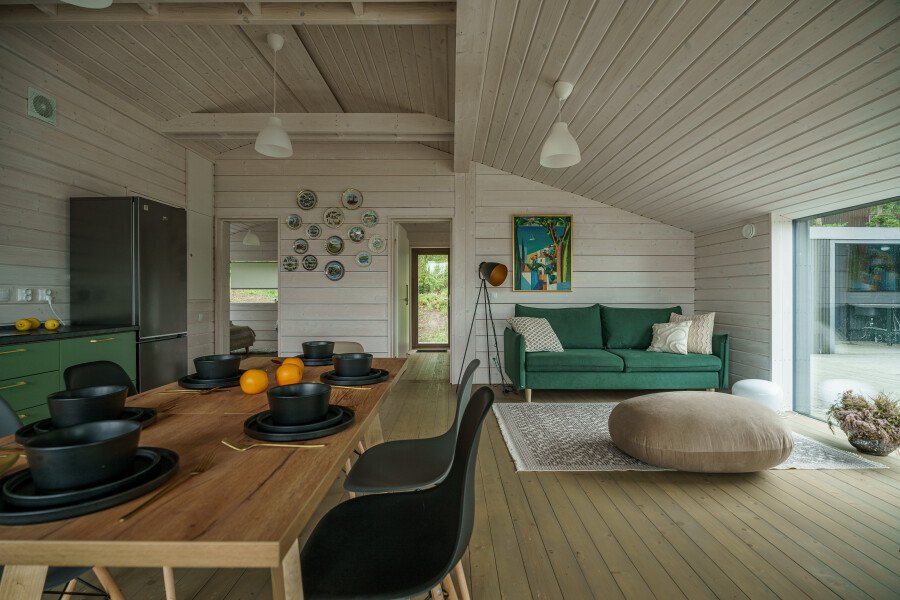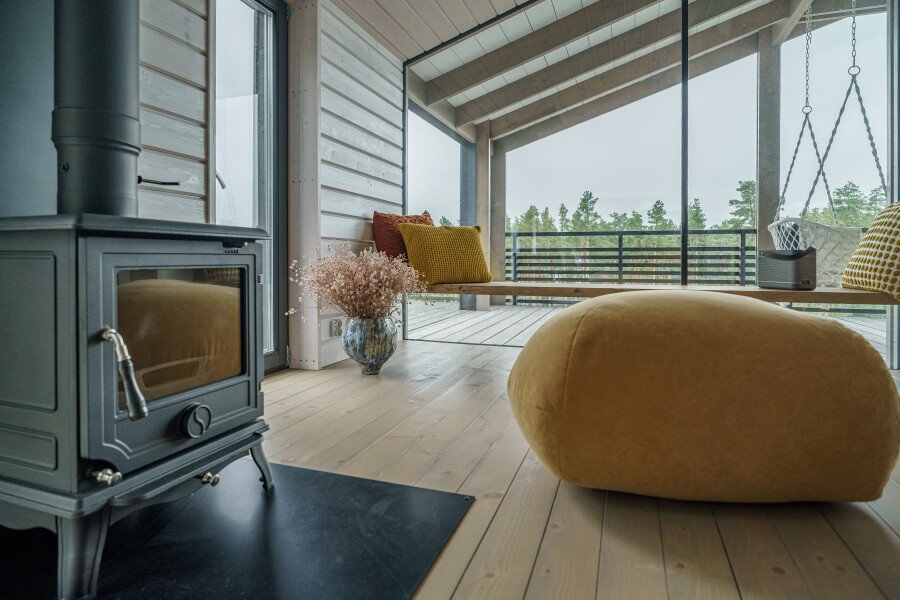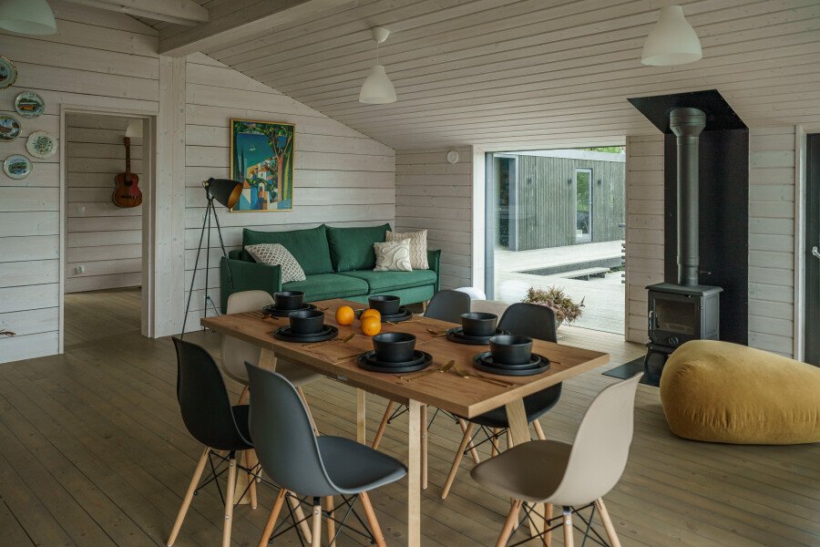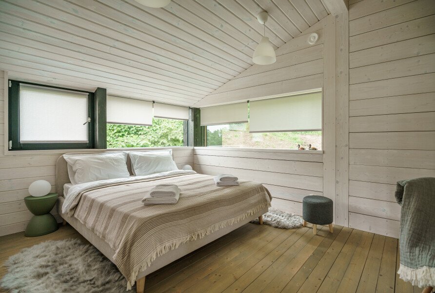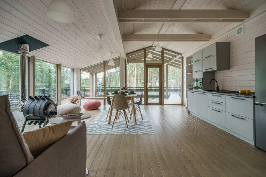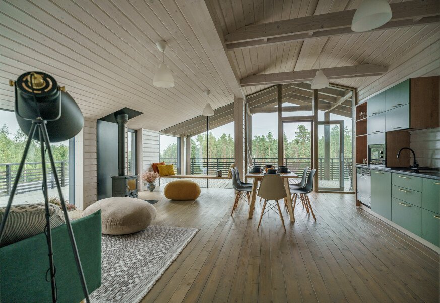 Всесезонные дома оснащены всем необходимым для комфортной жизни. Просторные террасы, окружающие каждый дом, и панорамные окна размывают границы между уютным интерьером и окружающей природой: дневной свет свободно проникает внутрь, наполняя пространство и создавая атмосферу тепла. Гостиная превращается в центр притяжения, где время замедляется, позволяя вам наслаждаться моментами: будь то утренний кофе с видом на сосны или бокал вина, когда солнце медленно скрывается за горизонтом, наполняя воздух живыми звуками и ароматами природы.