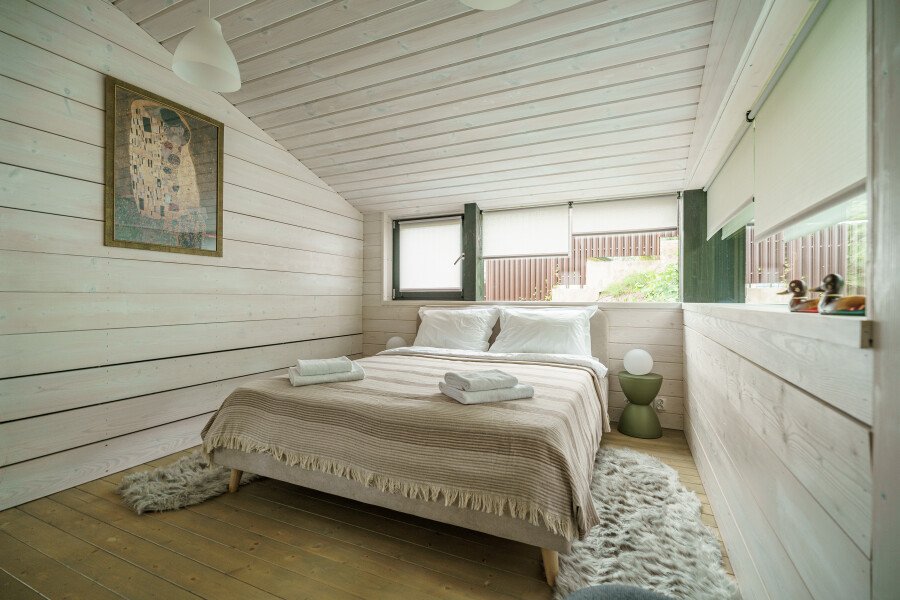 В этом доме с максимальным комфортом могут жить 5 человек, однако, по запросу можно разместить до 7 человек на дополнительных спальных местах (двуспальный диван-кровать в гостиной) за дополнительную плату.