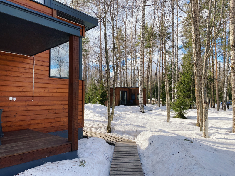 К вашим услугам будут комфортная двуспальная кровать, раскладывающийся диван, собственная кухня, душ, место для хранения и сушки лыж, чистый лесной воздух, а также атмосфера уюта и загородного отдыха.
