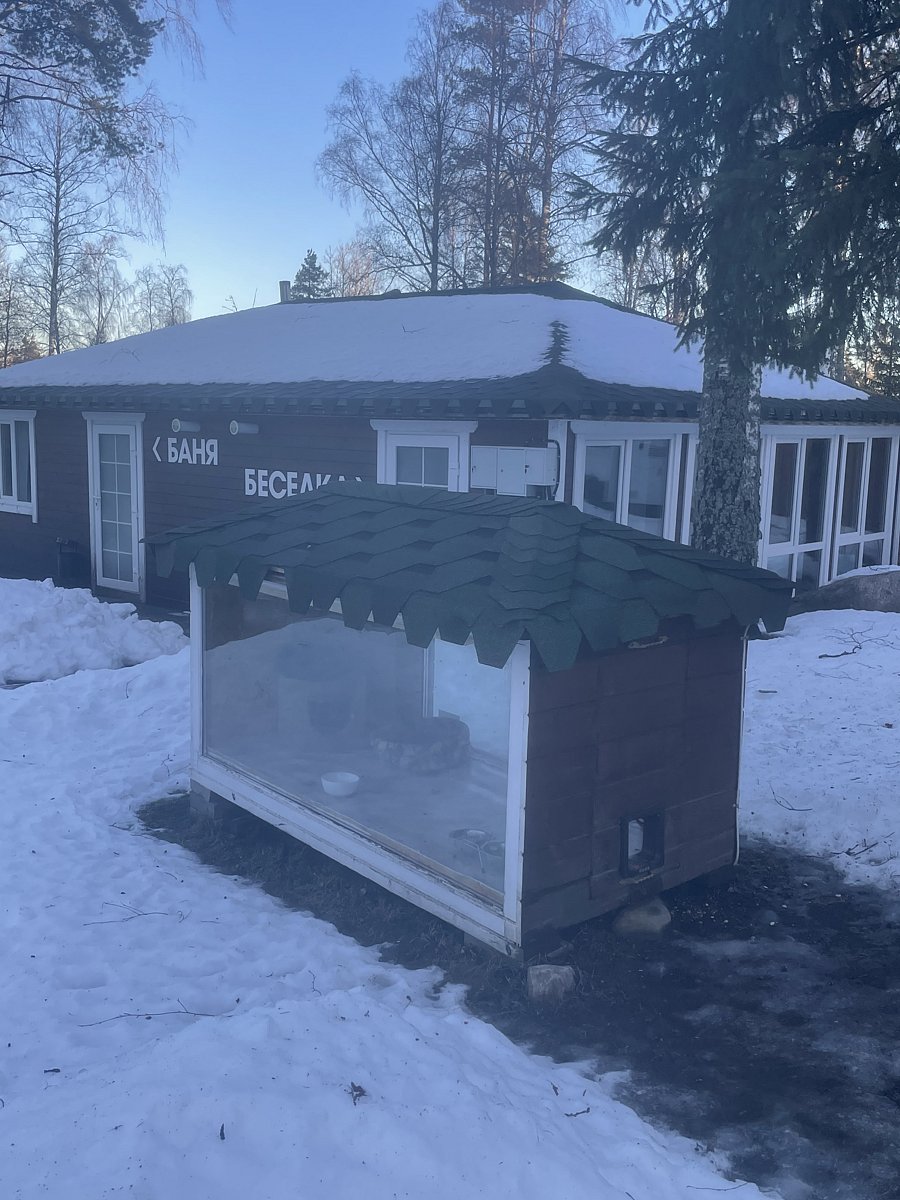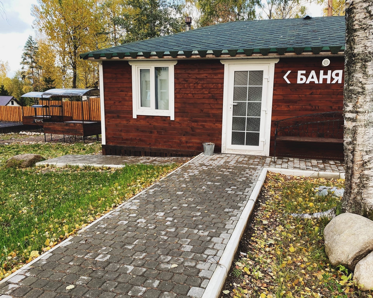 Баня-бочка рассчитана на небольшие компании и находится в 1 минуте ходьбы от коттеджей.