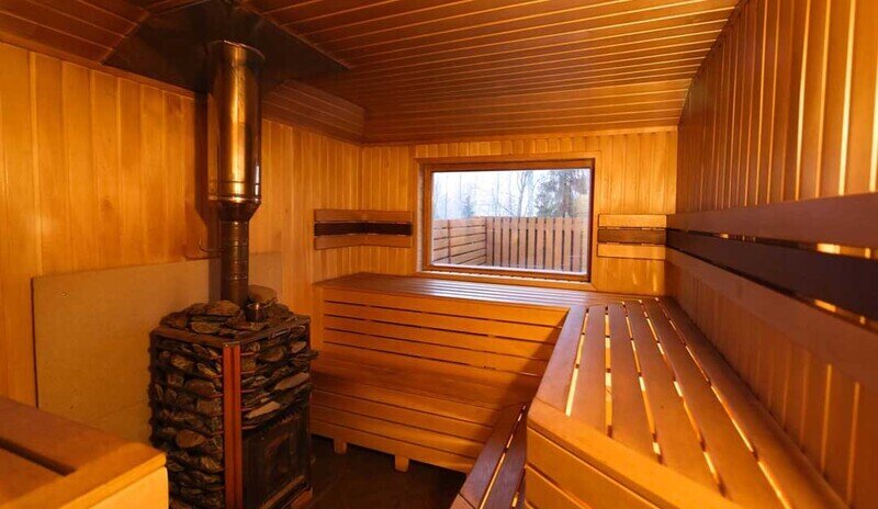 В сауне есть все для комфортного отдыха: душевая комната, большая обеденная зона, комната отдыха, вместительная финская парная и купель для любителей закаливания.