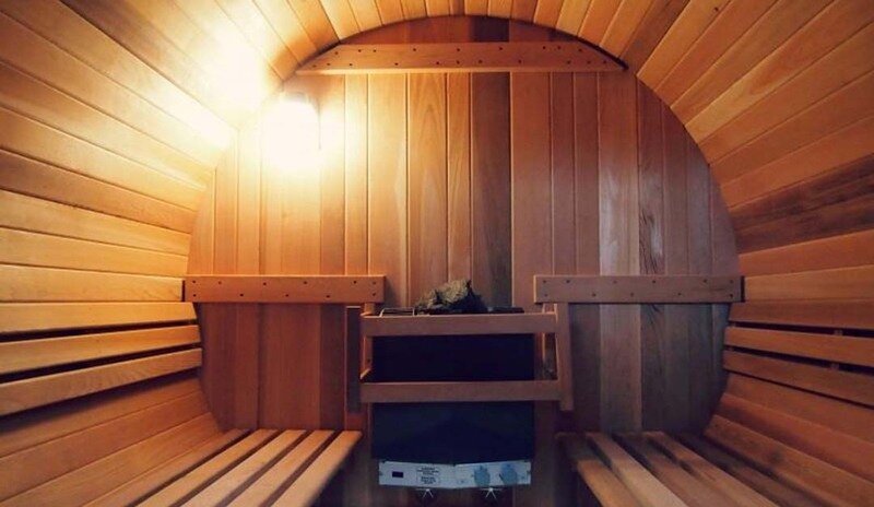В бане-бочке оборудована душевая зона, парная и зона отдыха, а также купель для любителей закаливания.