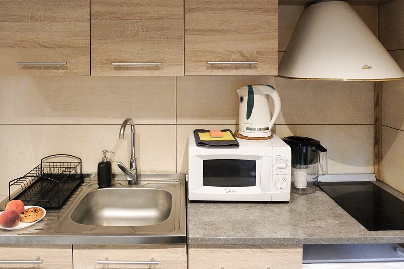 В номере есть все необходимое даже для длительного пребывания: собственная кухня с плитой и холодильником, душ, удобная кровать, стол для приема пищи, комната для сушки лыж, системы хранения вещей.