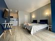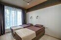 Данная категория номеров отличается большей площадью, оборудованной мини-кухней (микроволновая печь, чайник, необходимая кухонная утварь на двоих). Номер располагается на первом этаже двухэтажного корпуса отеля. Интерьер сочетает в себе два стиля: классический и модерн. Площадь номеров данной категории 23 кв.м. Гостям предлагается: две односпальные кровати 80*200 (можно объединить в одну двуспальную), обеденный стол со стульями, мини-кухня (СВЧ, чайник, посуда), цифровое ТВ, мини-холодильник, санузел с душевой и тропическим душем. В стоимость размещения входят одноразовые тапочки и косметические средства. Приятным бонусом расположения номера является быстрый доступ на улицу. В теплое время перед входом в номер можно разместиться за кофейным столиком.