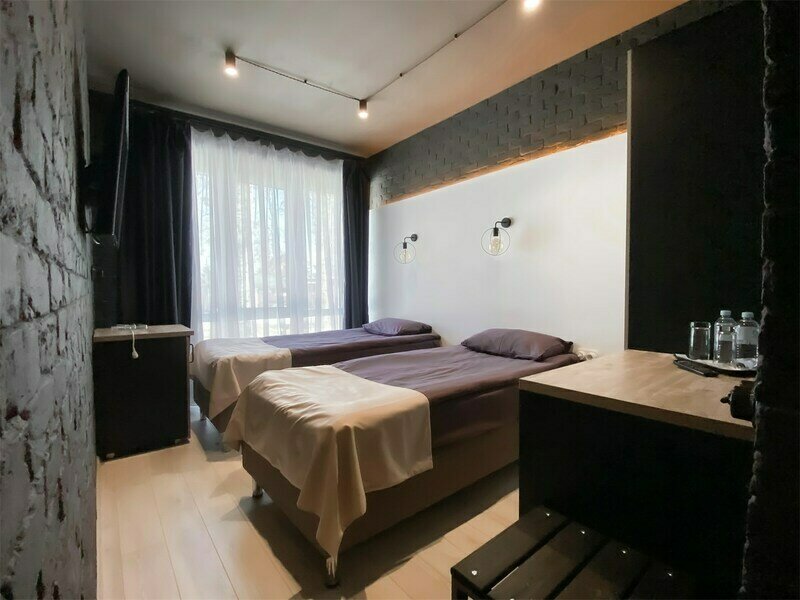 Стандартный номер 20 м2 выполнен в Лофт стиле со всеми удобствами. Для размещения гостей в номере имеются две раздельные кровати (по запросу гостей объединяются в одну большую). Для комфортного проживания номер укомплектован: шкафом для одежды, прикроватными тумбочками, TV, а также письменным столом и холодильником. Косметические средства, полотенца, тапочки.