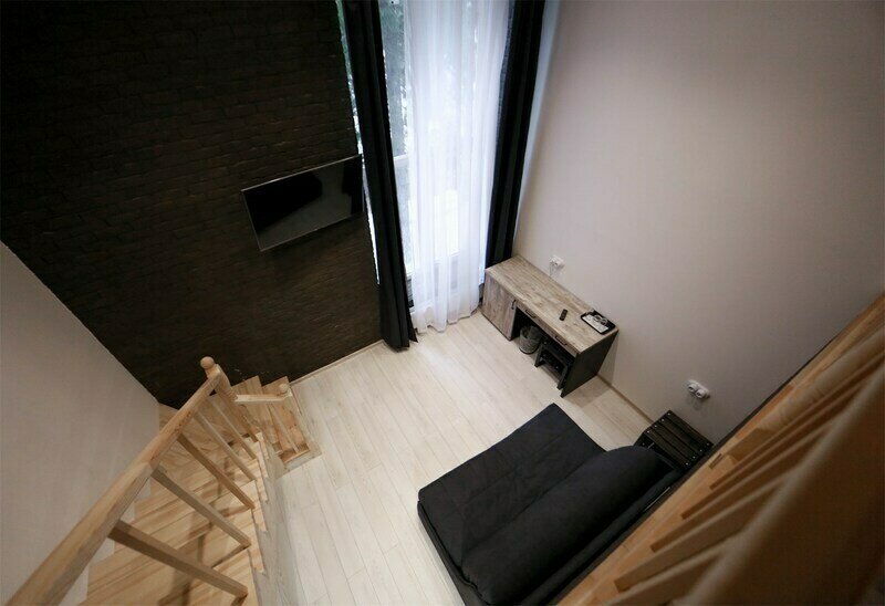 Номер первого этажа имеет свой выход на улицу, в летнее время перед входом в номер можно разместиться за кофейным столиком.