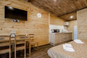 Апартаменты с двумя раздельными кроватями / одной большой у г.к.Игора - отличный формат отдыха для тех, кто приезжает отдохнуть вдвоем и при этом не хочет переплачивать за аренду дома/коттеджа. В номере есть все необходимое: оборудованная кухня, тв, обеденный столик для двоих, рейлинг для одежды, небольшие прикроватные тумбочки, комод для вещей и санузел с душевой кабиной.
