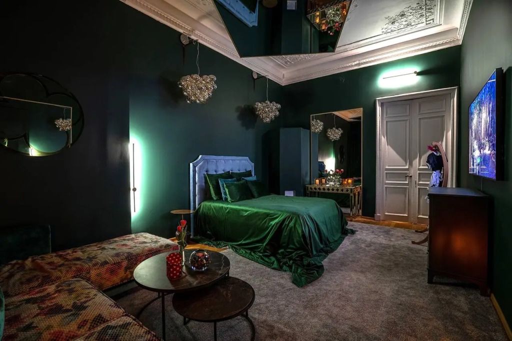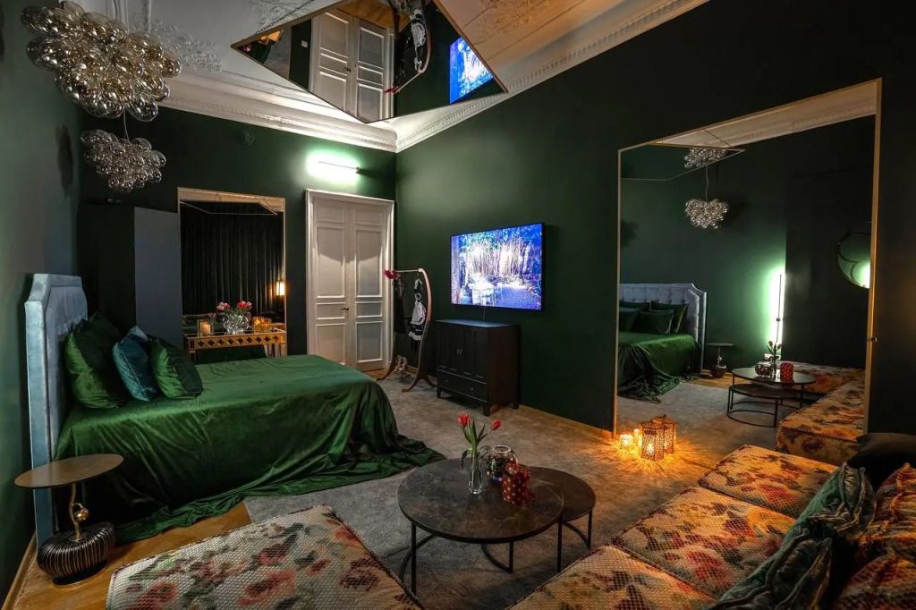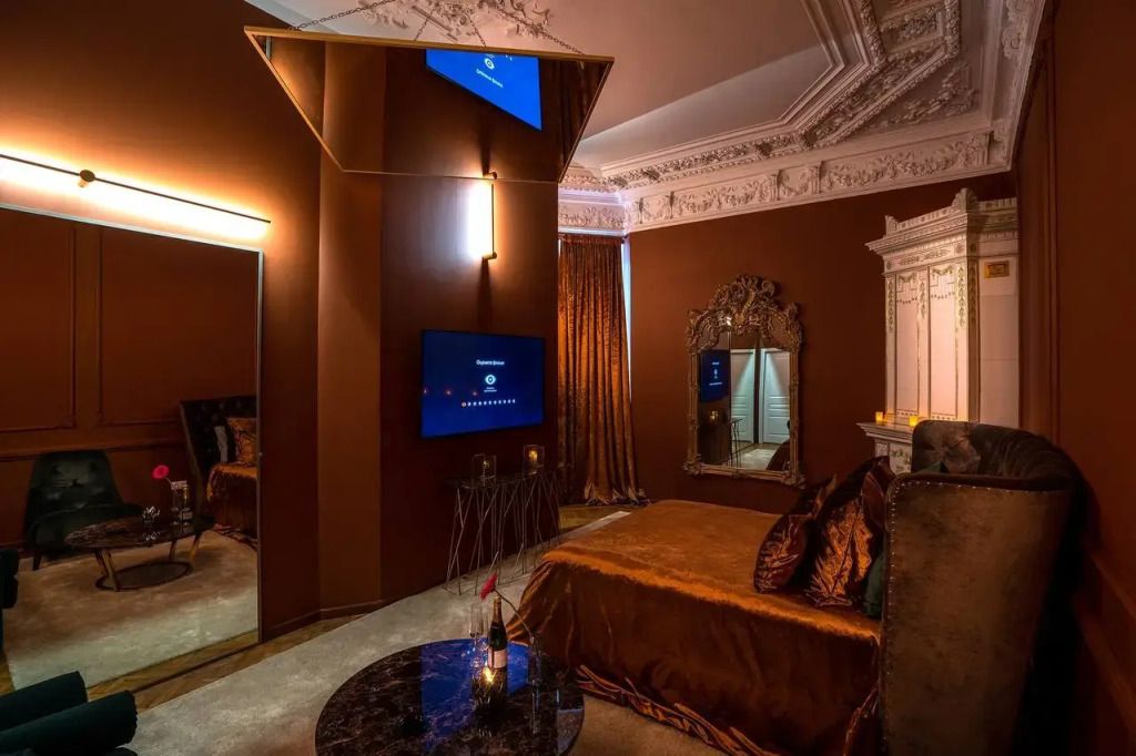 Тематические номера с огромными зеркалами на стенах и на потолках. Каждая комната задает особое настроение и новую тональность, укутывая гостей неописуемыми ощущениями.